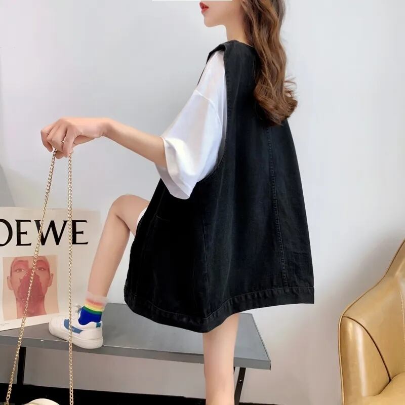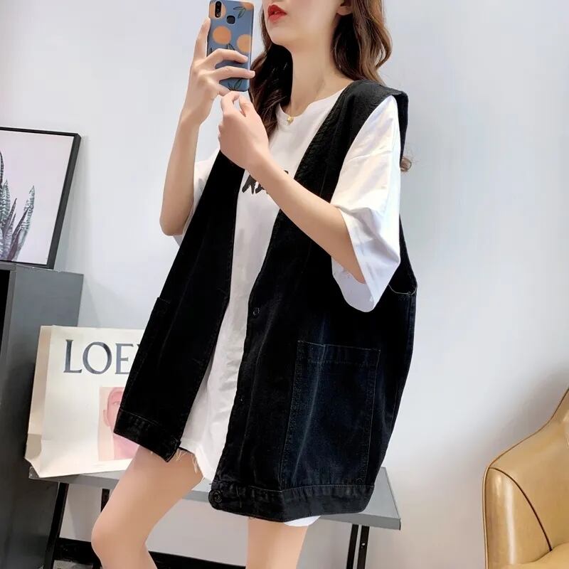 送料無料 ルーズ V ネック デニム ベスト女性ストリート ビッグ ポケット ジャン Chaleco ヴィンテージ黒ノースリーブ ジャケット洗浄ブルー Veste ブラック Vネック ビンテージ AE3356588109317139