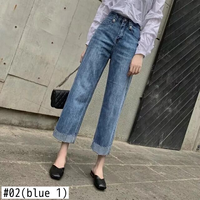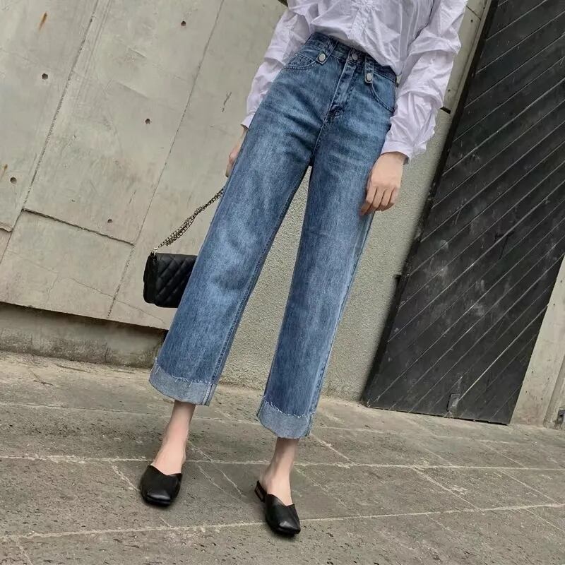 送料無料 袖口ストレートジーンズ女性ウエストだぶだぶ Vaqueros ストリート足首の長さのデニムパンツカウボーイママズボン AE335652445684207