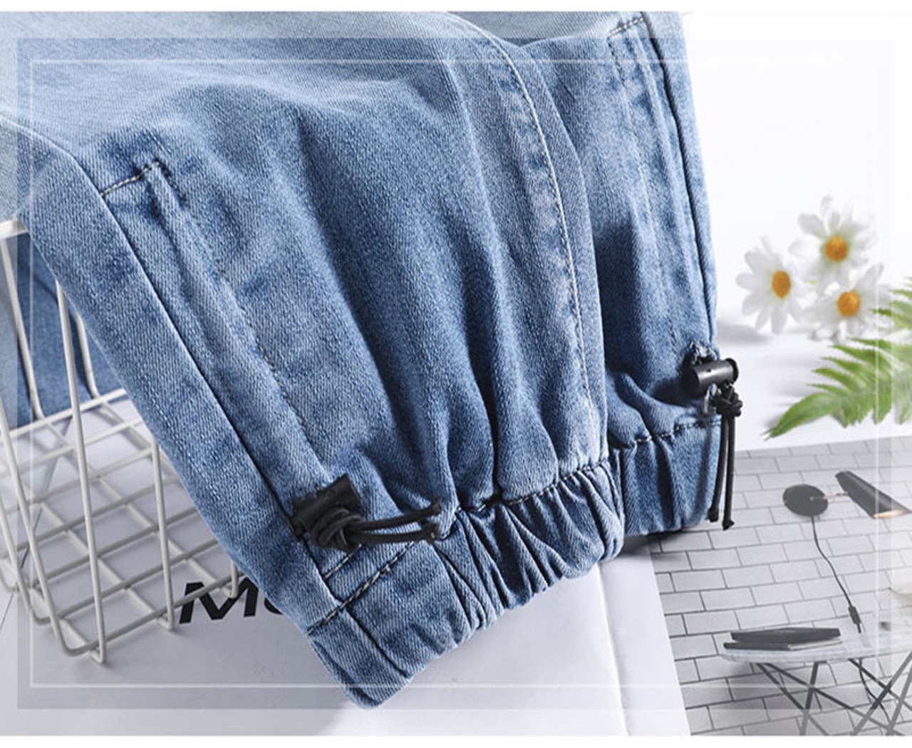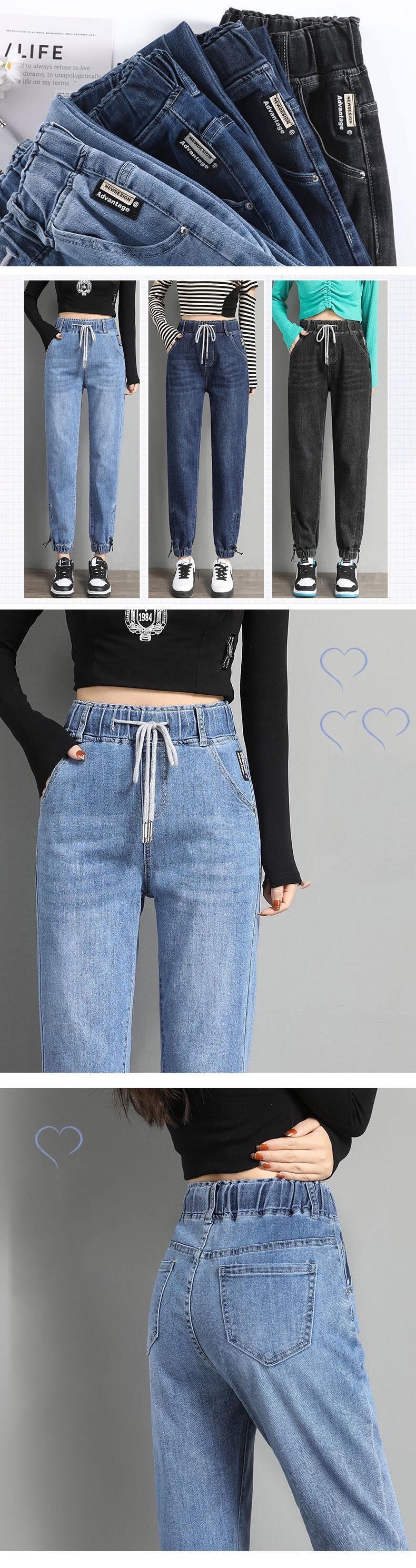 送料無料 弾性ウエストハーレムジーンズ女性ストリートバンドジョガー Vaqueros 足首の長さのジーンズパンツ春ボーイフレンドデニムズボン エラスティック 伸縮 スプリング 春物 AE3356535474444760
