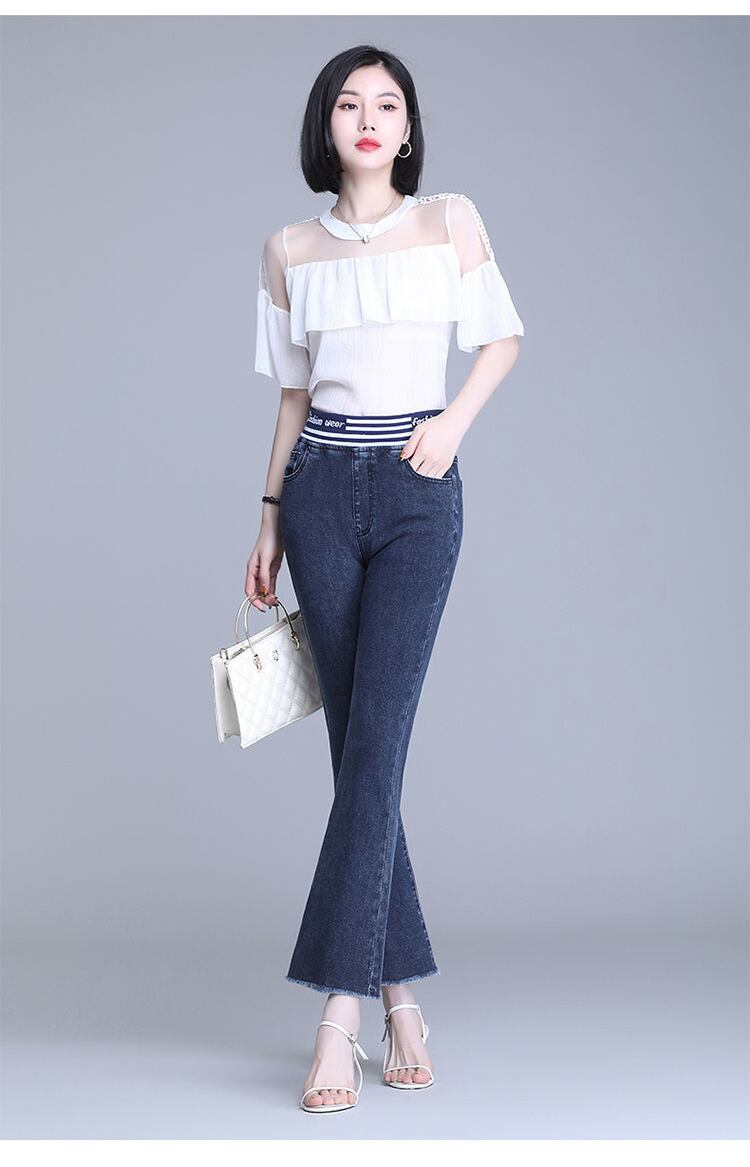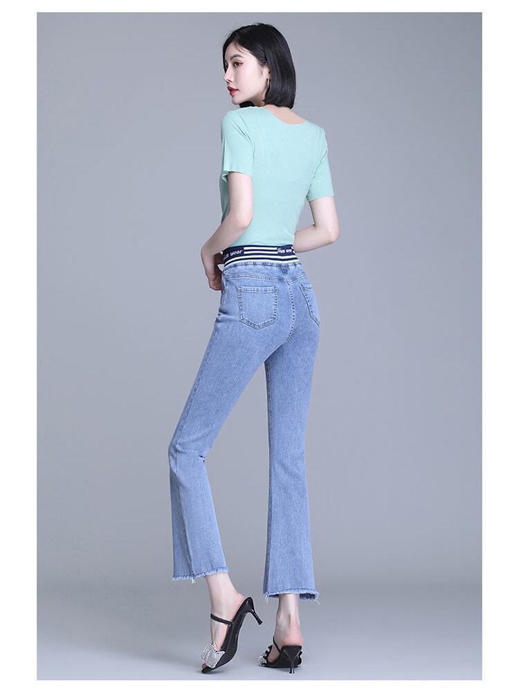 送料無料 足首丈フレアジーンズ女性パッチワークウエストストレッチ Vaqueros スキニーベルボトムパンツ薄いデニムのズボン AE335654284612490