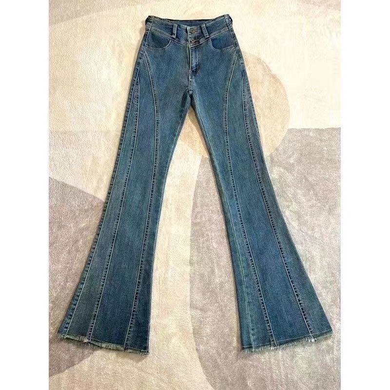 送料無料 漂白フレアジーンズ女性ウエストスリムヴィンテージ Vaqueros スキニーデニムズボン黒 Y2k ベルボトムパンツ ブラック ビンテージ AE335655111385249