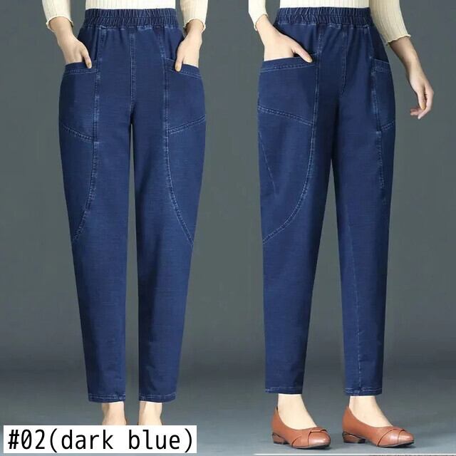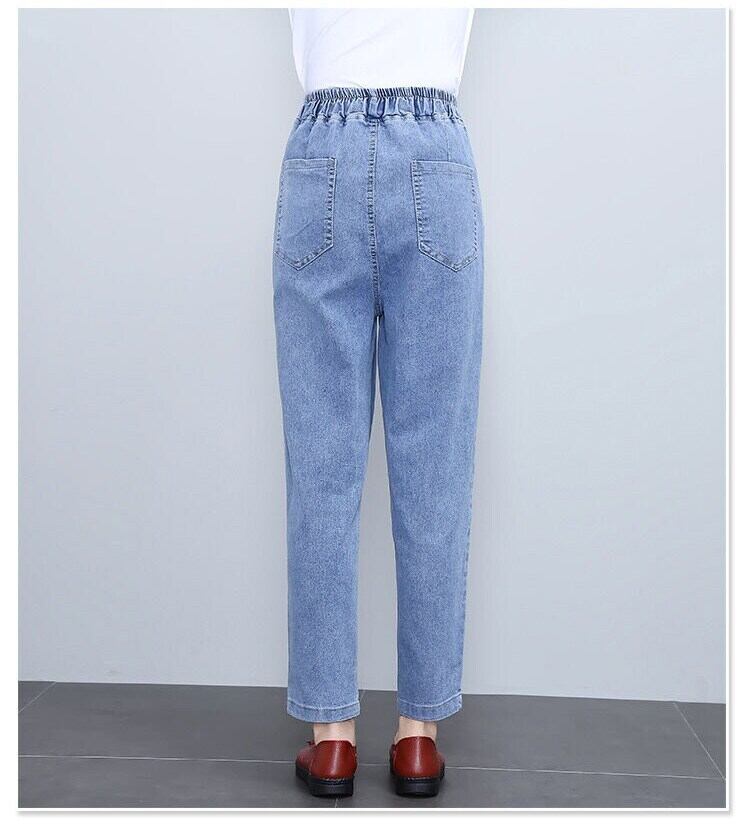 送料無料 母弾性ウエストポケットハーレムジーンズ 2022 バギーブルーデニムパンツ Clic Pantalones De Mezclilla Cintura Alta エラスティック 伸縮 AE3356519046849721