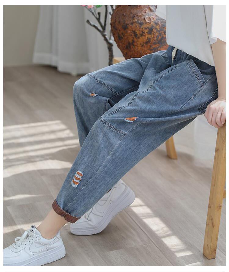 送料無料 ヴィンテージポケットリッピング女性のジーンズプラスサイズ 3xl ルーズデニムハーレムパンツ弾性ウエスト足首だぶだぶ Vaqueros エラスティック 伸縮 大きめサイズ ビンテージ AE3356591707360749
