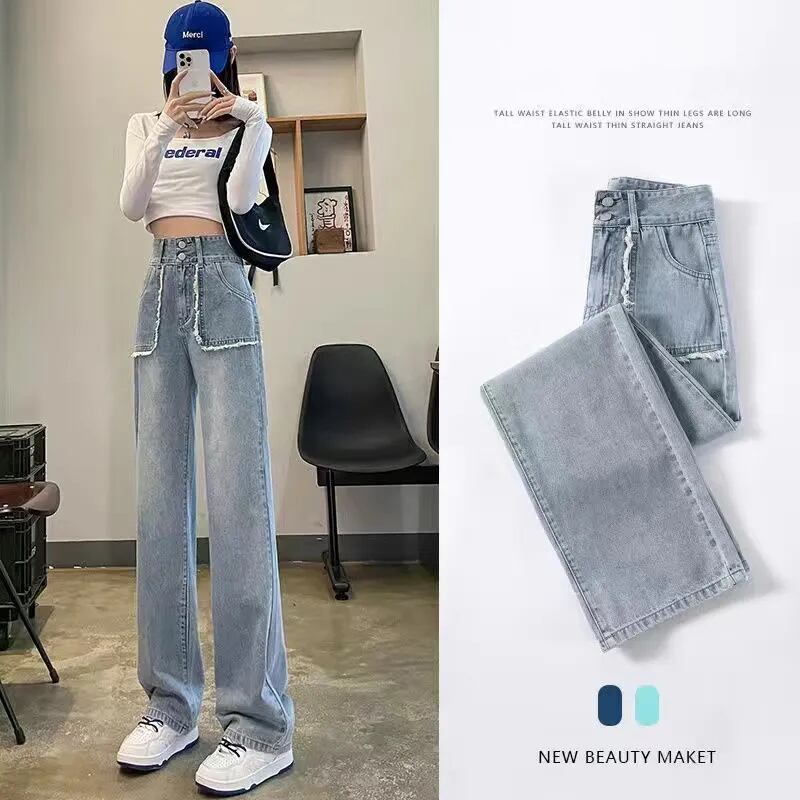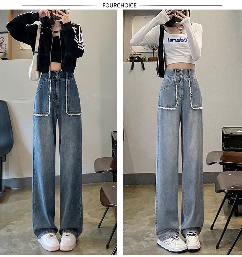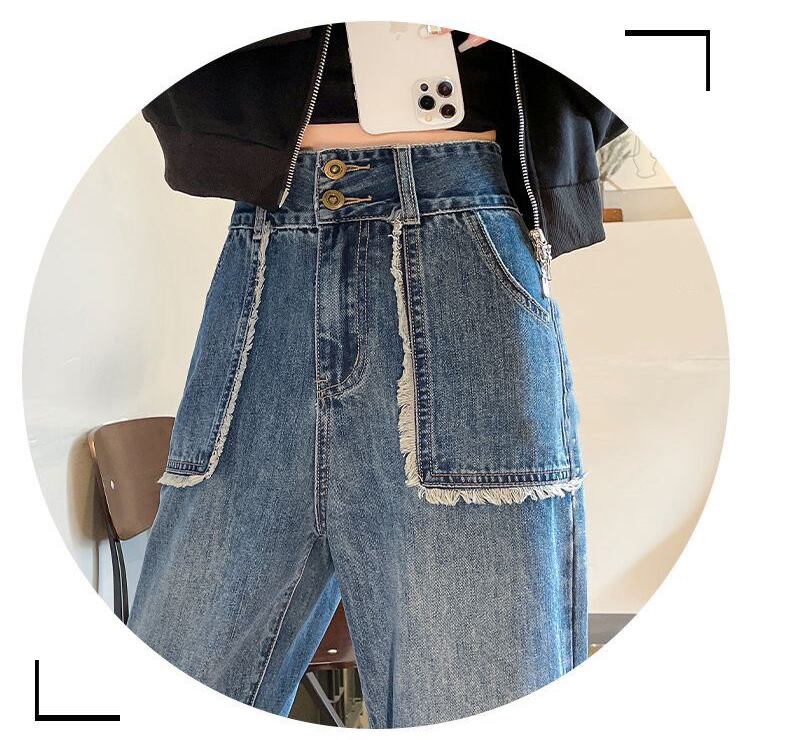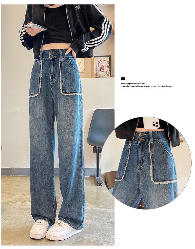 送料無料 ポケットワイドレッグデニムパンツ女性ストリート漂白ウエストだぶだぶのジーンズ 2023 春ウォッシュストレート Vaqueros スプリング 春物 ワイドパンツ AE3356578641648130