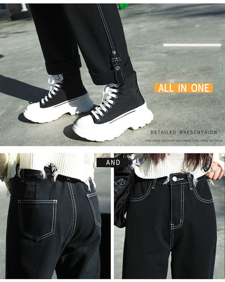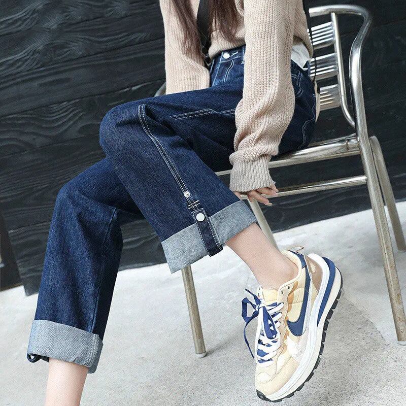 送料無料 ストリート足首カフスストレートジーンズ女性 2022 ウエストデニムバギーパンツ春夏ボーイフレンドワイド脚 Vaqueros スプリング 春物 サマー 夏物 ワイドレッグ ワイドパンツ AE3356555945470802