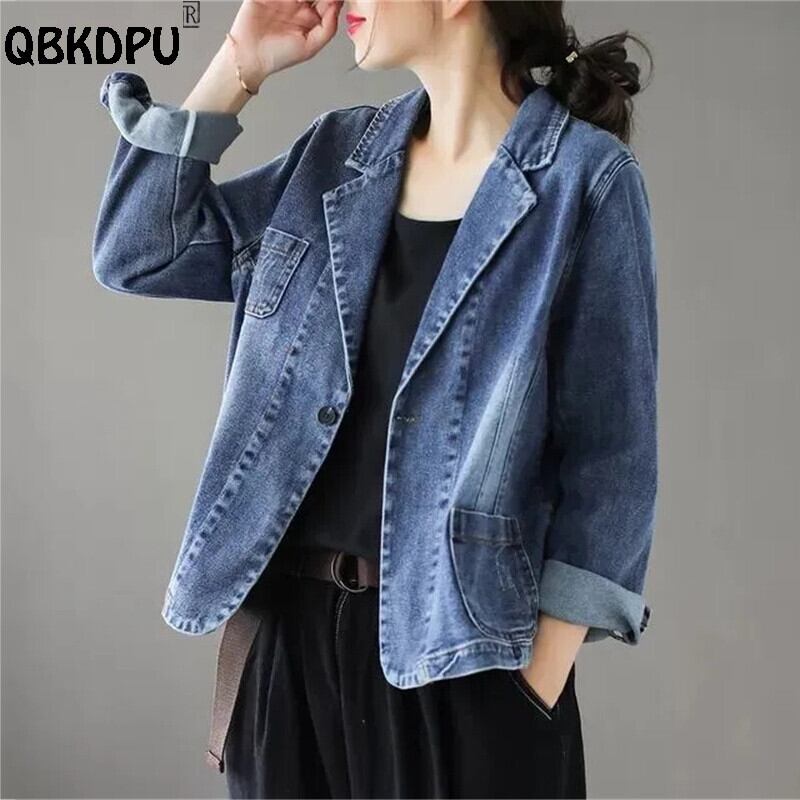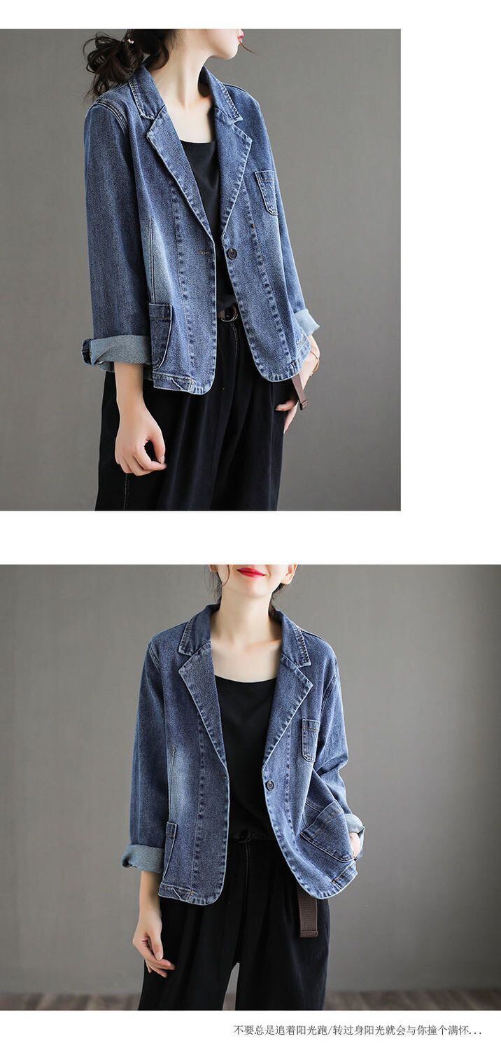 送料無料 ヴィンテージショートデニムスーツジャケット女性春漂白母のジャケット長袖オフィスレディクリックジャン Veste ロング スプリング 春物 ビンテージ 会社 学校 通勤や通学にも AE335655496760057
