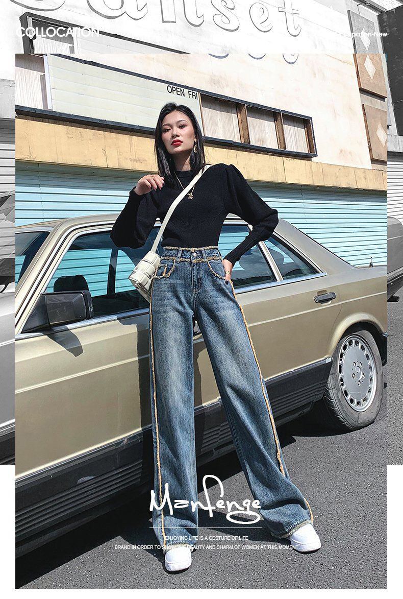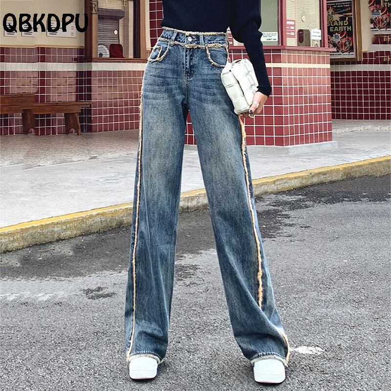 送料無料 ヴィンテージ電話ワイドレッグジーンズ女性ストリートウエストデニムズボンパッチワークだぶだぶのパンツストレート Vaqueros ワイドパンツ ビンテージ AE335658591808704