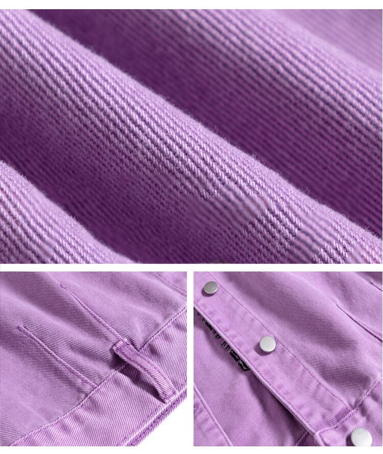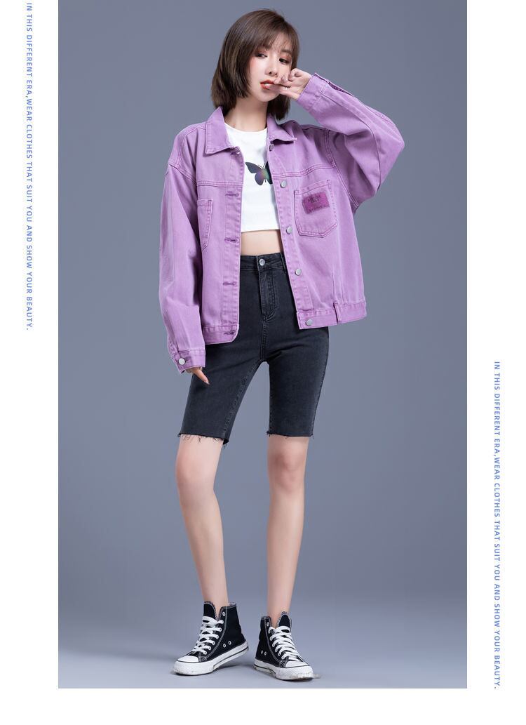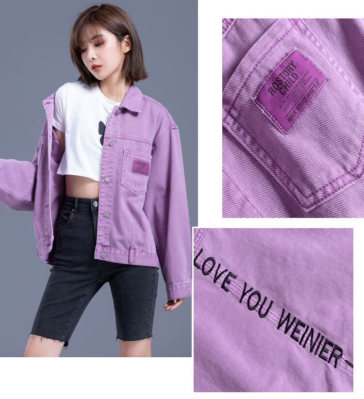 送料無料 トレンディルーズパープルデニム Chaquetas ストリート手紙刺繍ジャンジャケット女性春 BF スタイル上着 スプリング 春物 AE3356559901140478