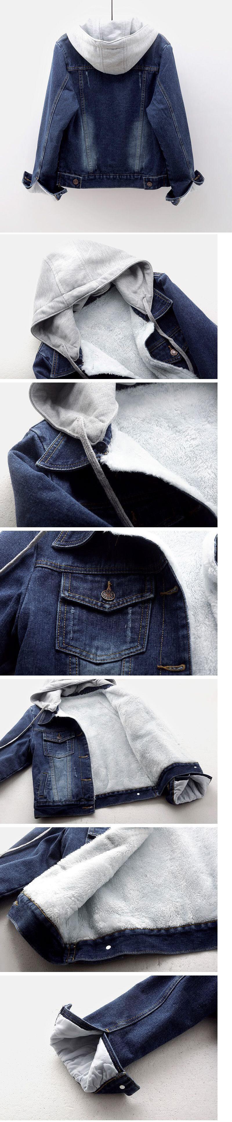 送料無料 冬のフード付きショートデニムジャケット女性取り外し可能な帽子ベルベット厚いジャンコートストリートボーイフレンドカウボーイ着用生き抜く ウィンター 冬物 AE3356545606289929 | 女性の為の通販サイト-fashion navi