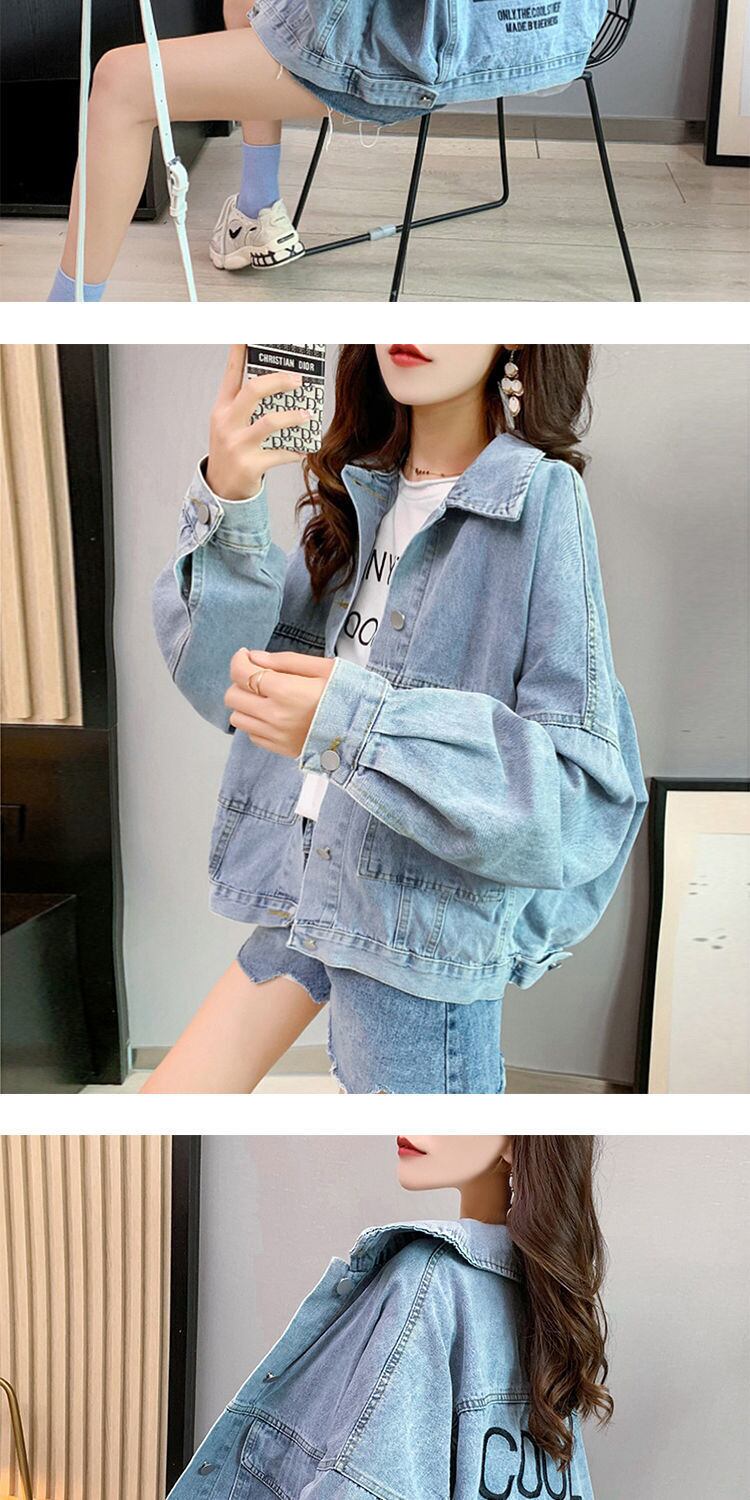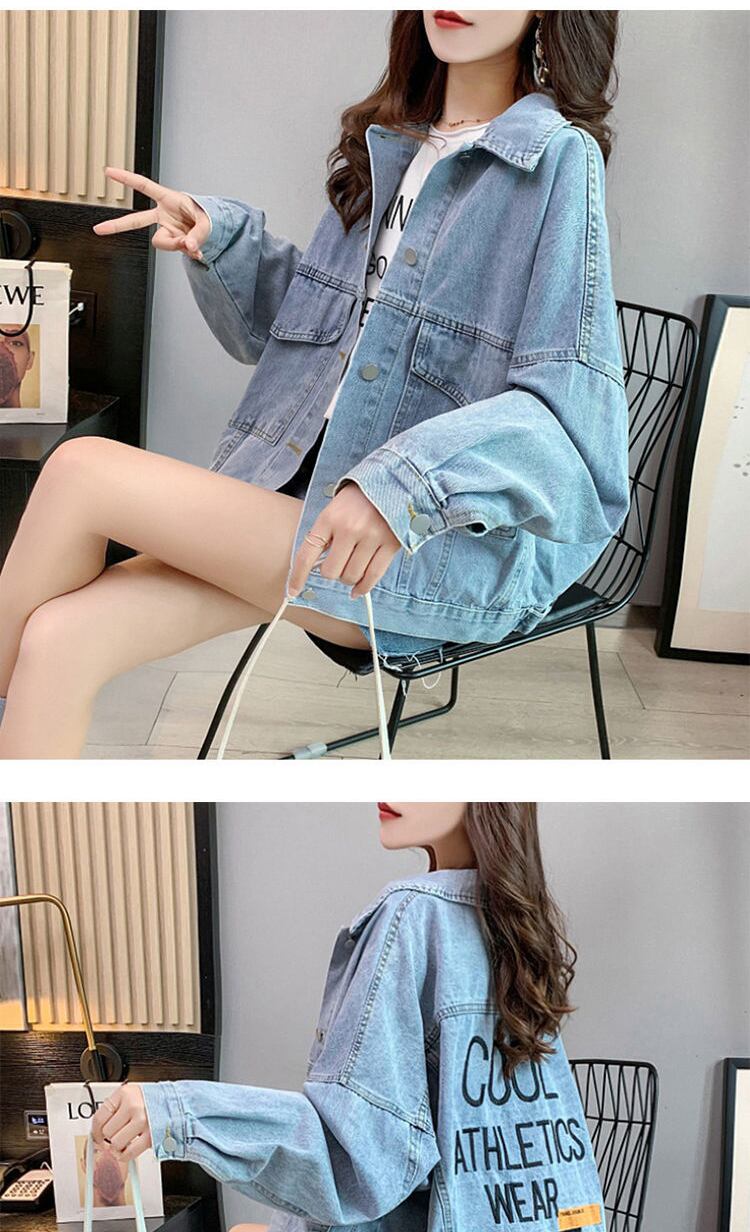 送料無料 文字刺繍デニムジャケットルーズジャンコートボタンラペルクロップドアウター春女性 スプリング 春物 AE3356530171487476