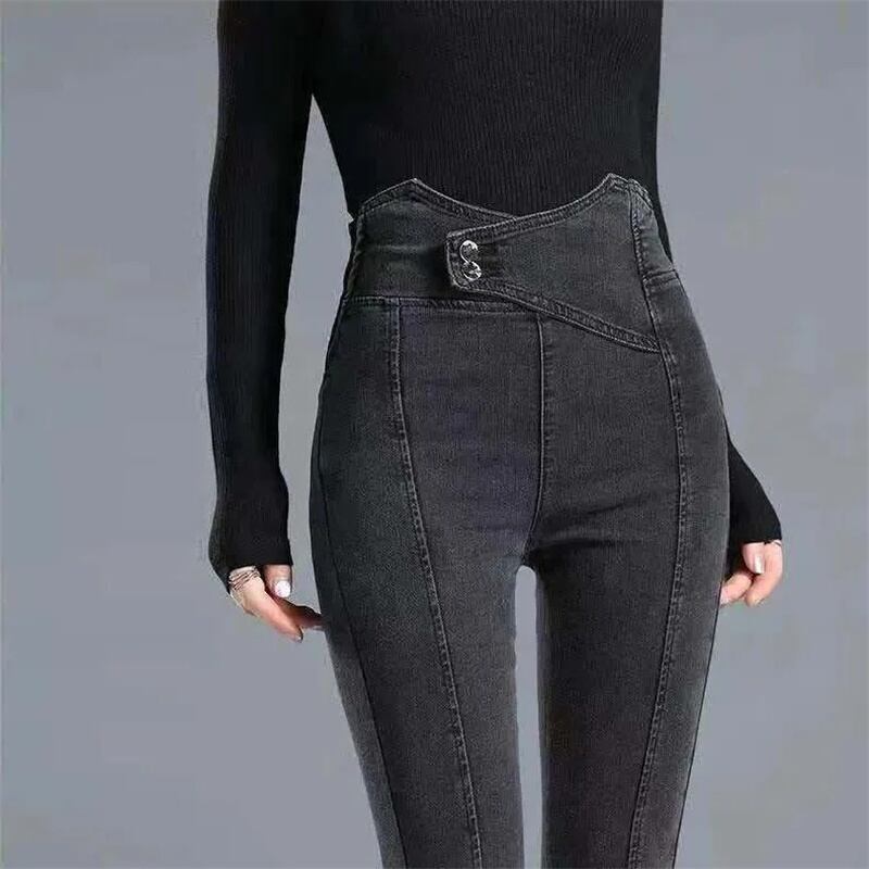 送料無料 女性のシックなウエスト ジーンズ サイド ジッパー スキニー Vaqueros スリム ヴィンテージ ブルー ペンシル デニム パンツ ビンテージ AE3356577650553401