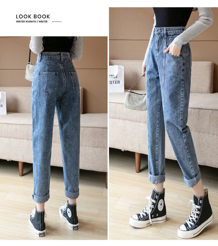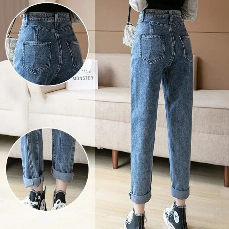 送料無料 ウエストジーンズ女性 2022 足首丈ハーレムジーンズストリートウォッシュルーズデニムパンツカウボーイストレートパンツ AE3356543365693178