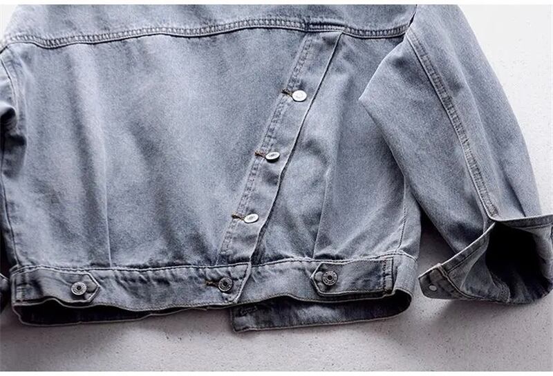 送料無料 ブルーフード付きターンダウン襟デニムジャケット女性ボタンパッチワーククロップドジャンコート解体帽子プラスサイズのデニム Chaquetas 大きめサイズ AE335656362049068