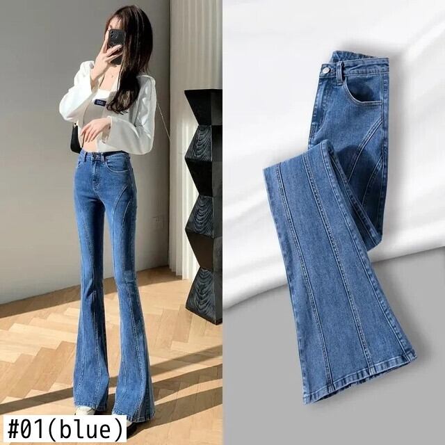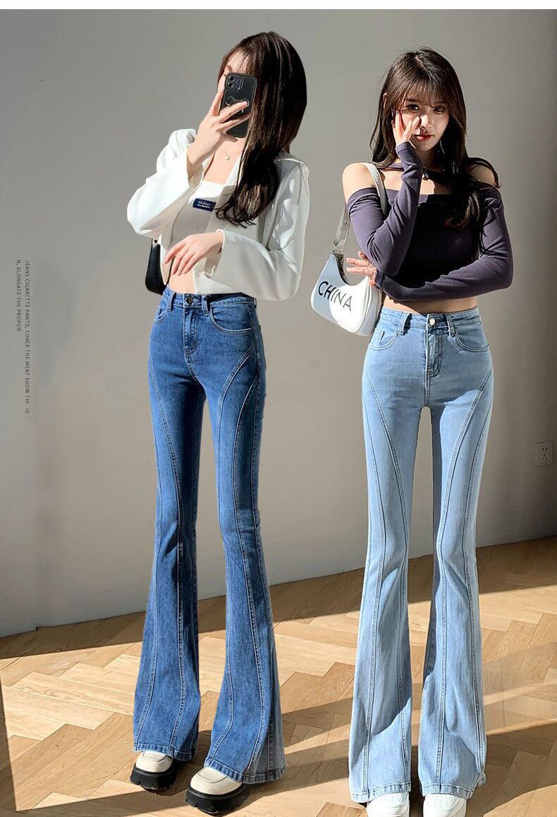送料無料 スキニーフレアジーンズ女性ウエストストレッチ Vaqueros ストリートデニムズボンロングベルボトムジーンズ レッド AE3356573383668284