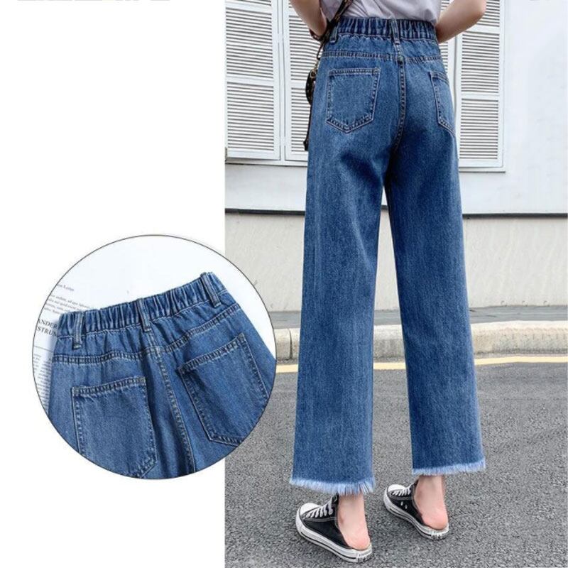 送料無料 Tel ワイドレッグジーンズ女性ウエストストレート Vaqueros 2022 ブルーバギーパンツ春デニムカプリパンツ スプリング 春物 ワイドパンツ AE3356516367014914