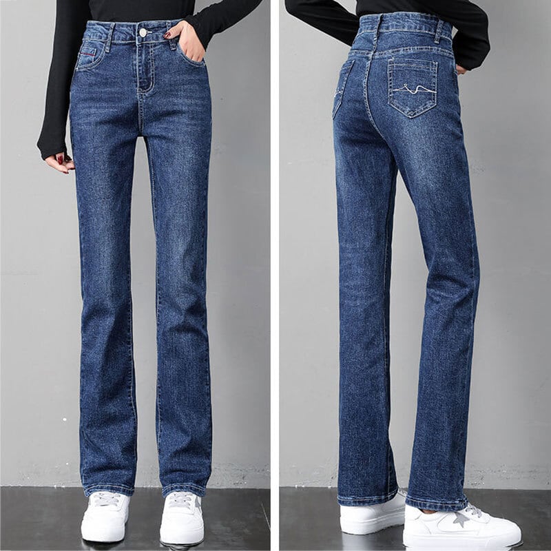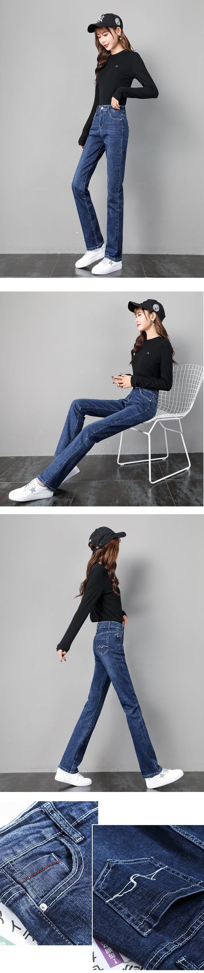 送料無料 ウエストジーンズ女性ライトブルー漂白ストレートパンツデニムズボン春スリムクリック Vaqueros スプリング 春物 AE3356548029474922