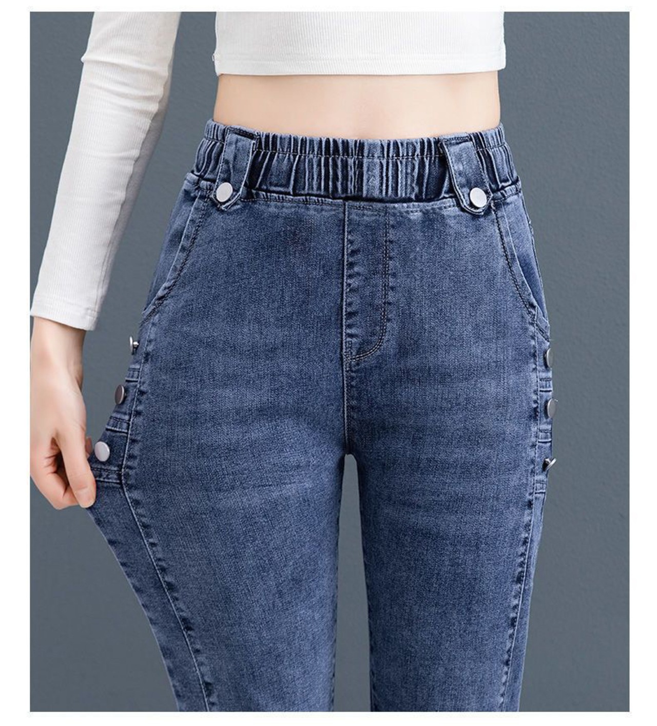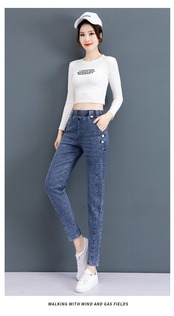 送料無料 ストレッチペンシルジーンズ女性春レトロスキニー Vaqueros スリムウエストデニムパンツ洗浄青黒カウボーイカプリパンツ ブルー ブラック スプリング 春物 AE3356553420126202