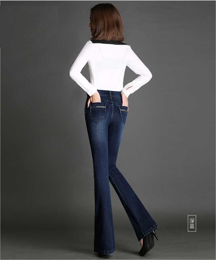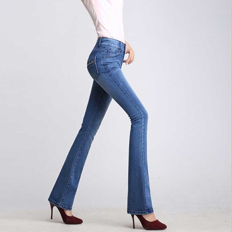 送料無料 ウエストスリムフレアジーンズ女性ヴィンテージ漂白スキニー Vaqueros ストリートデニムズボン春ベルボトムパンツ スプリング 春物 ビンテージ AE3356597435295004