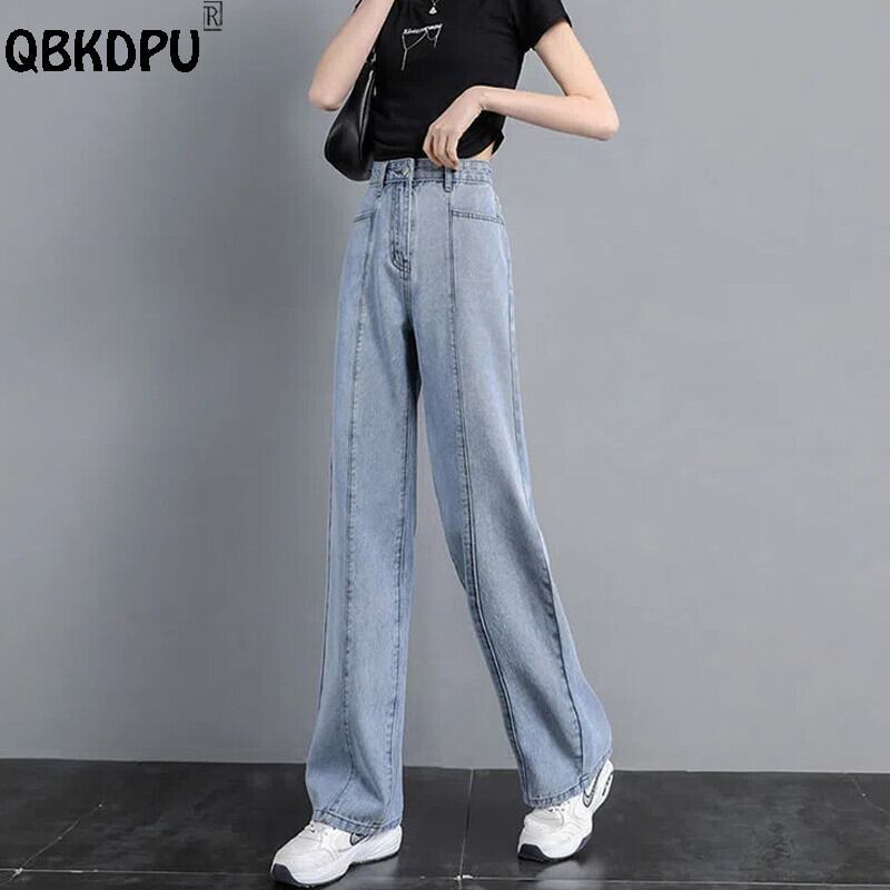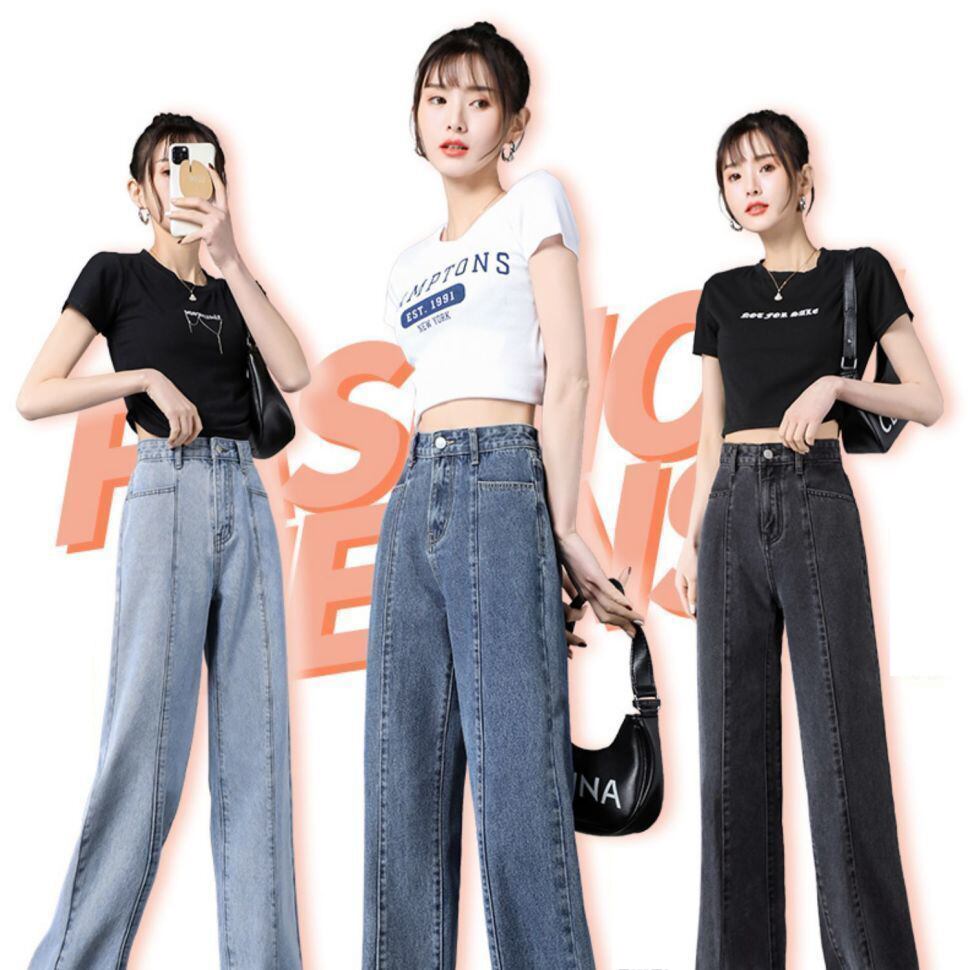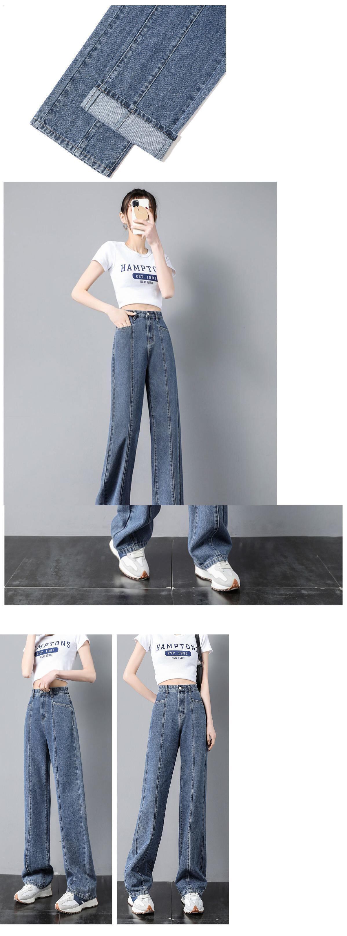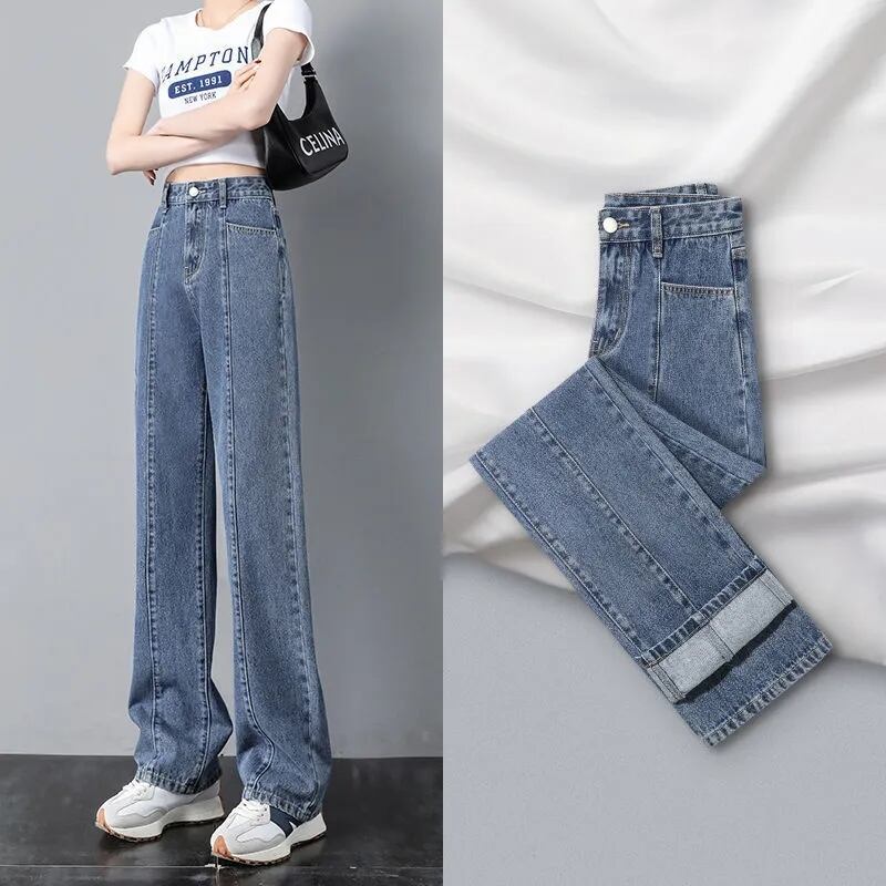 送料無料 ウエストワイドレッグジーンズ女性だぶだぶの Vaqueros ポケットストレートパンツ 93-97 センチメートルデニムパンツ ワイドパンツ AE3356585052930596