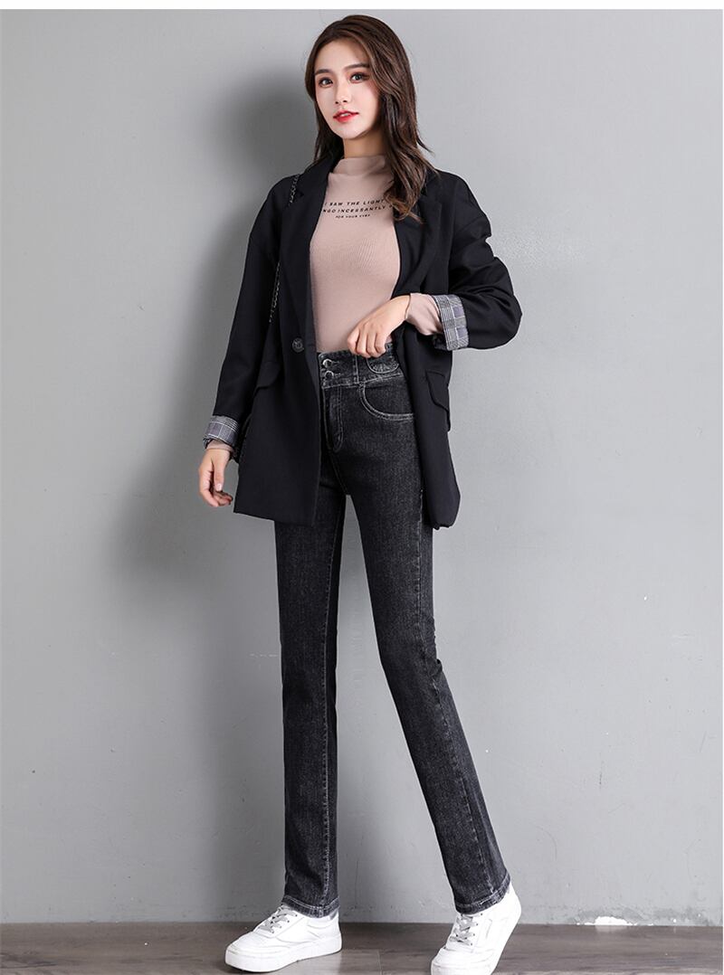 送料無料 Clic ソリッドウエストストレッチストレートジーンズ女性デニムストレートレッグパンツ 2022 ストリートママカウボーイズボン ソリッドカラー AE3356536040258389