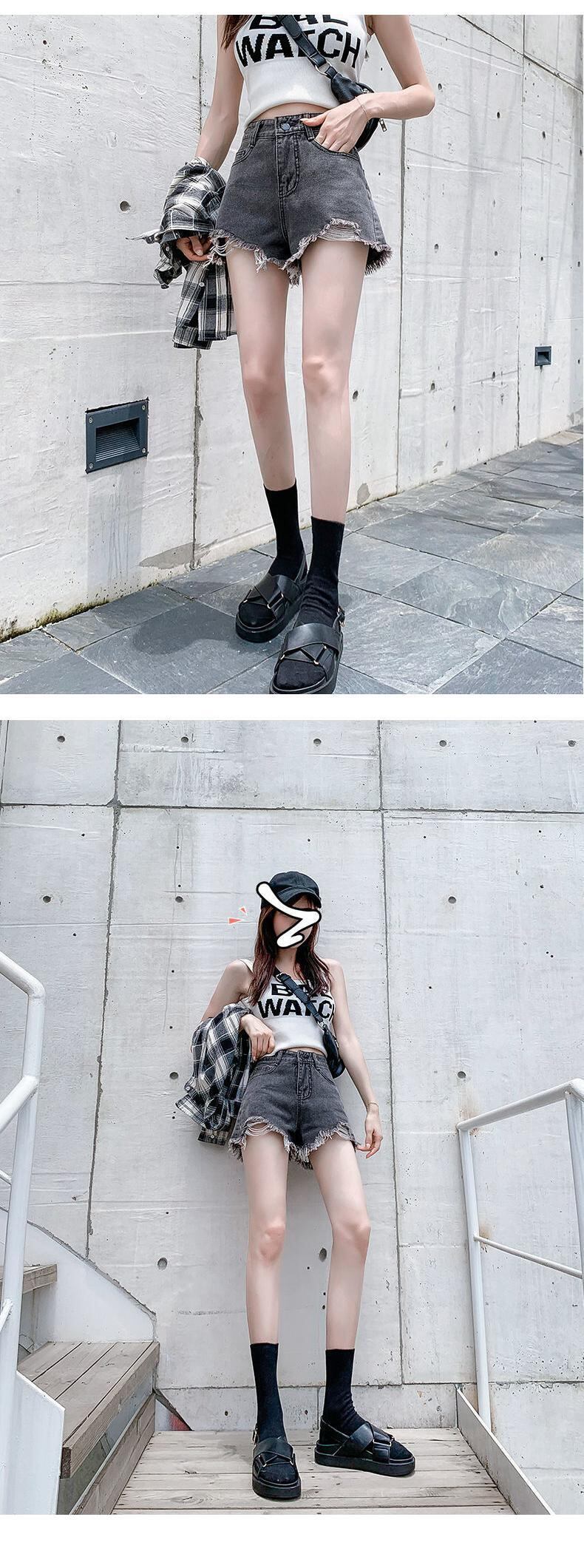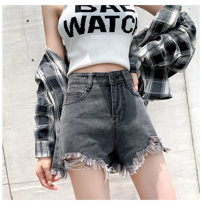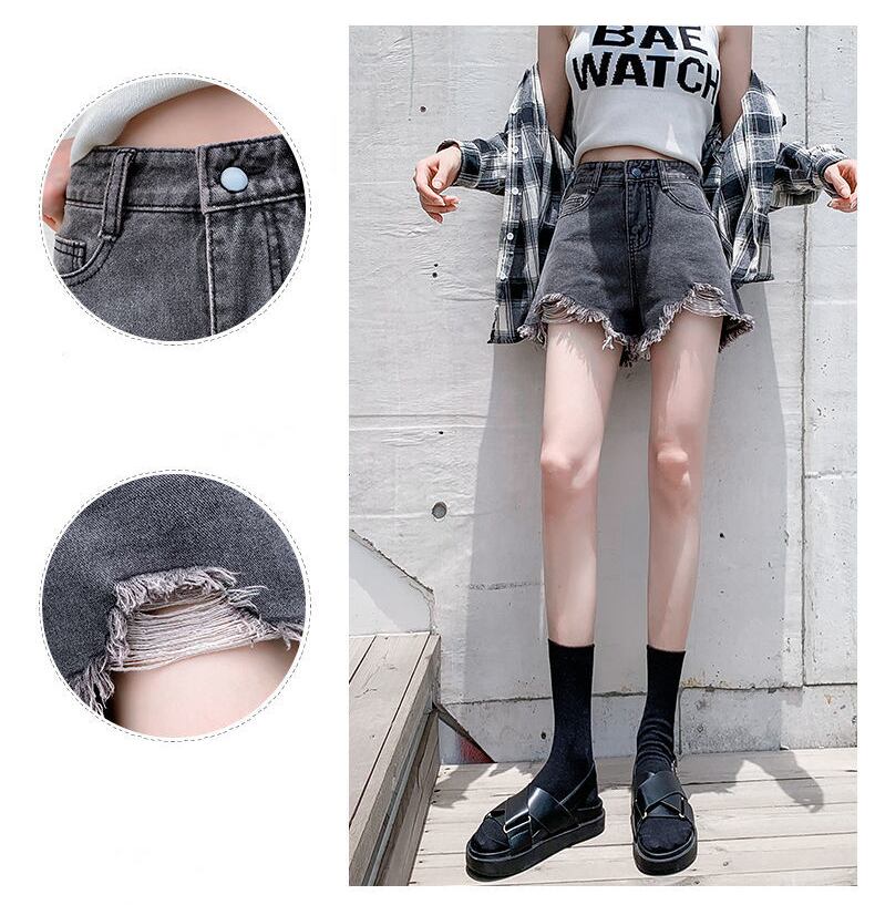 送料無料 グレー擦り切れ電話ショーツジーンズ女性プラスサイズ 5XL ストリートウエストセクシーショーツ 2022 夏デニム Pantalones Cortos 大きめサイズ サマー 夏物 ブルマー AE3356589641781339