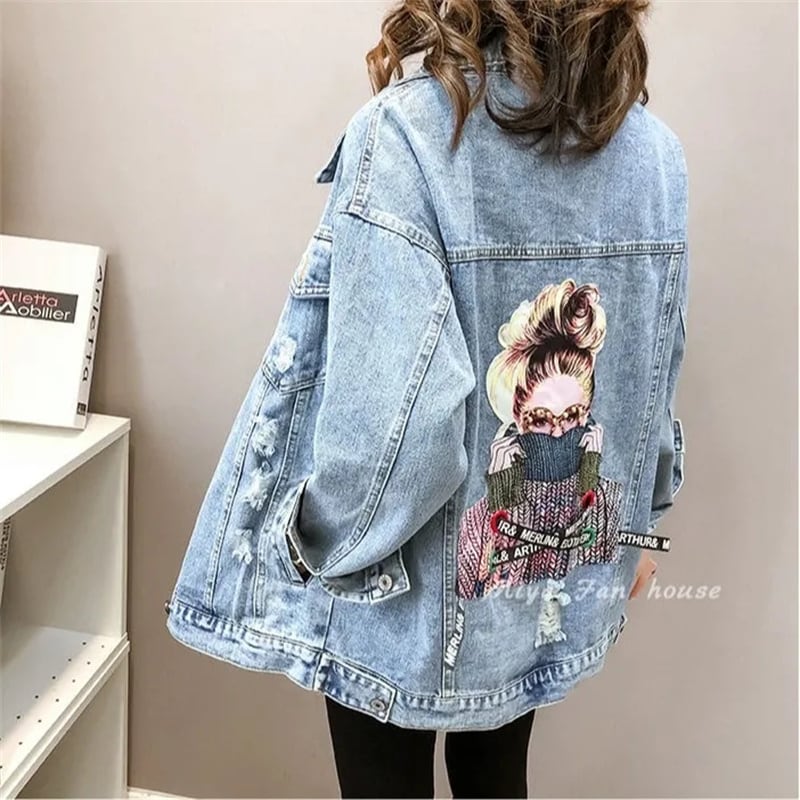送料無料 プラスのサイズ 90 キログラム印刷デニム Chaquetas ストリート擦り切れルース女性のジーンズ ジャケット特大春ベスト 大きめサイズ スプリング 春物 AE3356518060461668 | 女性の為の通販サイト-fashion navi