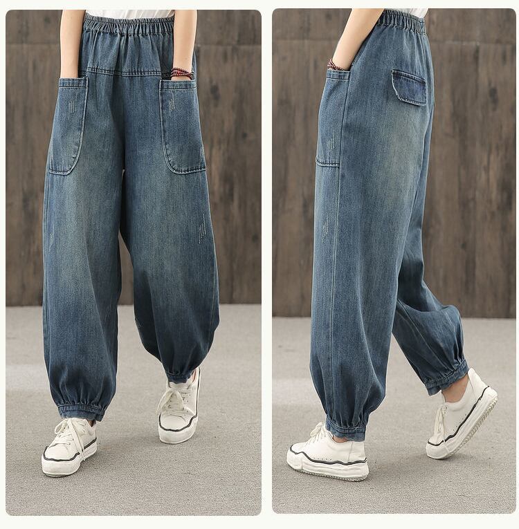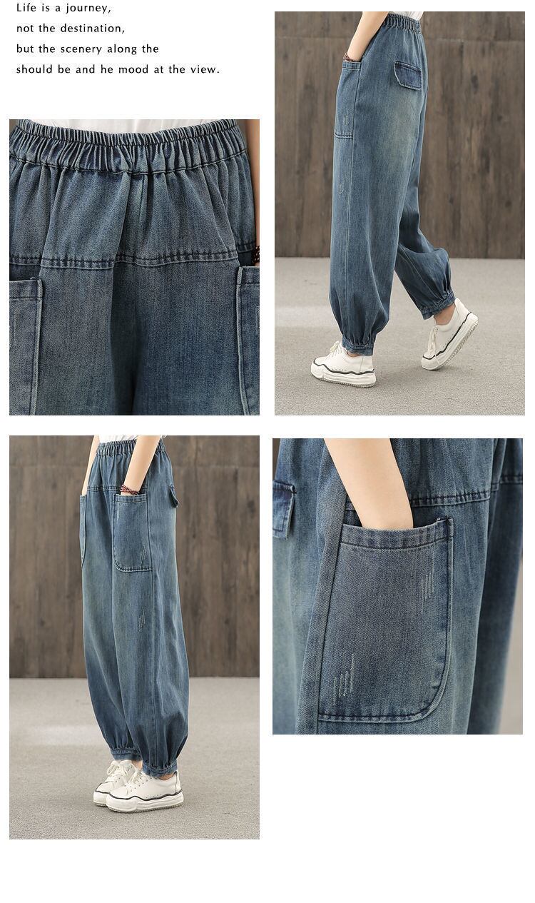 送料無料 ストリートルース 98 キロ特大ジーンズ弾性ウエストの女性のブルマジーンズ足首ビッグポケットボーイフレンドだぶだぶ Vaqueros エラスティック 伸縮 ショーツ ブルマー AE3356591634981869