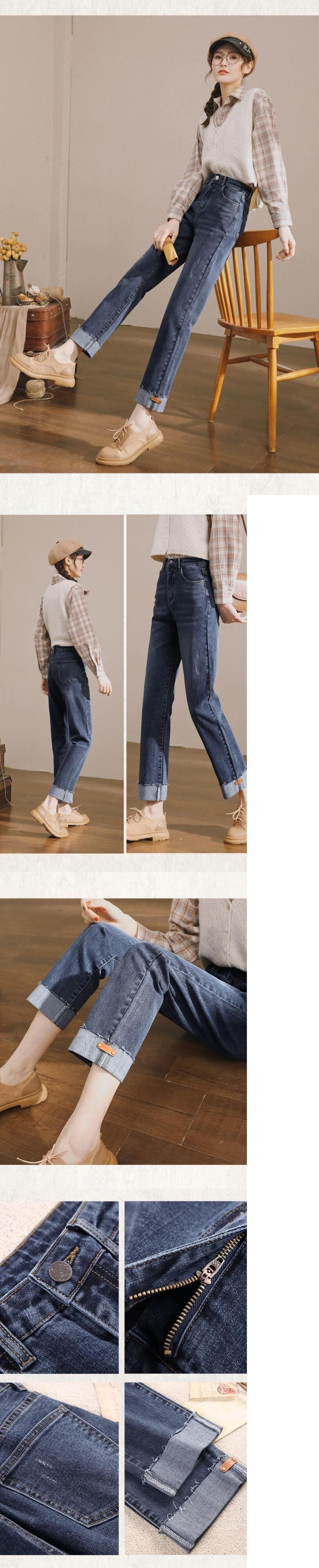 送料無料 ウエストストレートジーンズ女性 2022 春パッチワークデニムパンツ足首の長さ 83 センチストリート Vaqueros スプリング 春物 AE3356549558080987