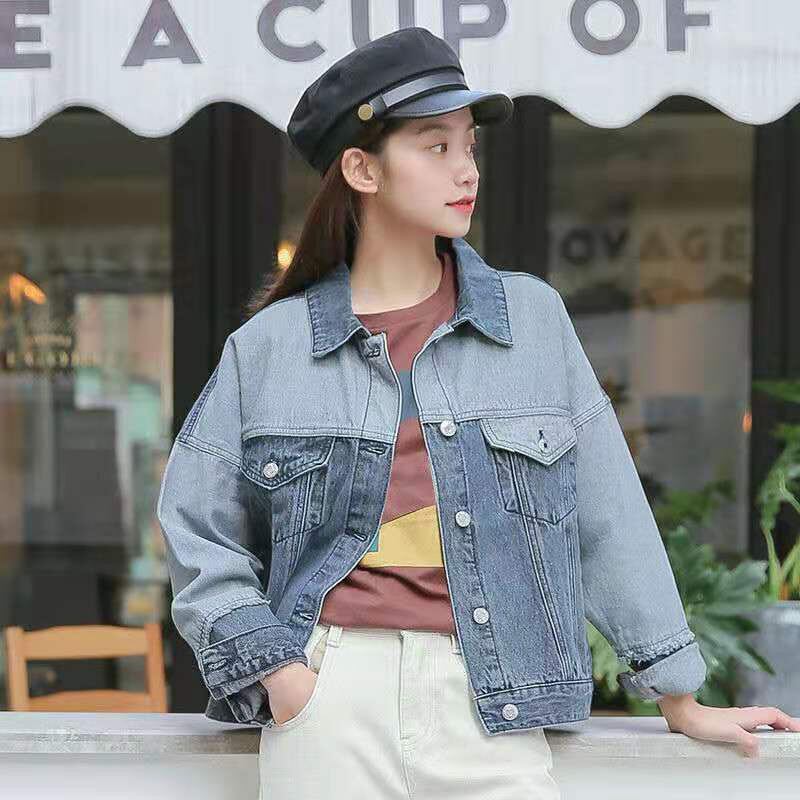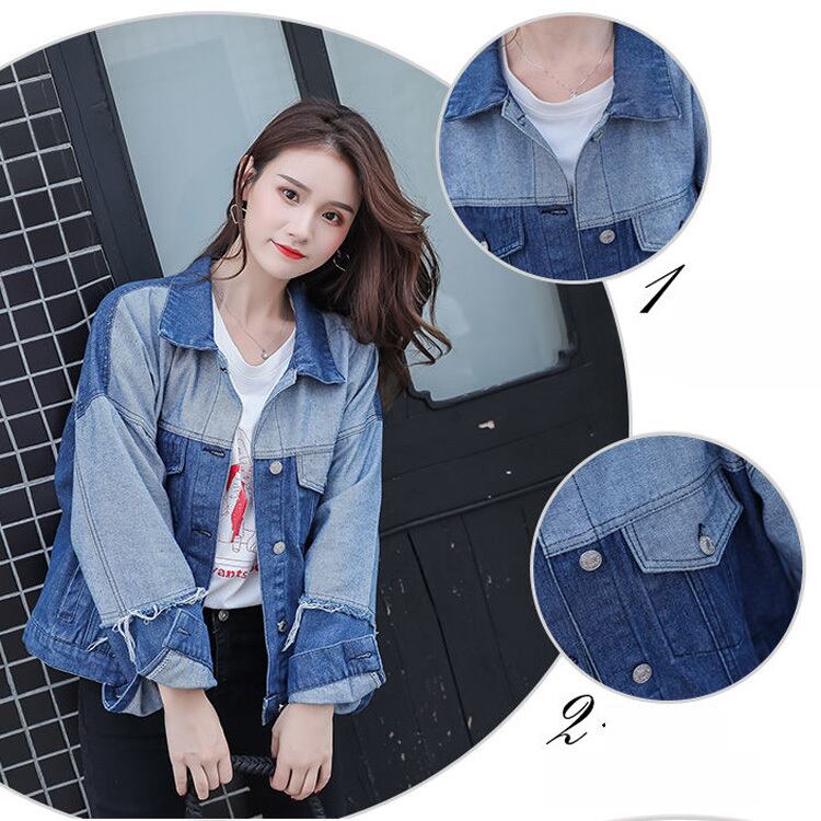 送料無料 パッチワークコントラストカラーショートデニムジャケット女性ルーズ原宿ジャンコートストリート春ブルー上着スタイル かわいい スプリング 春物 AE3356596985993237