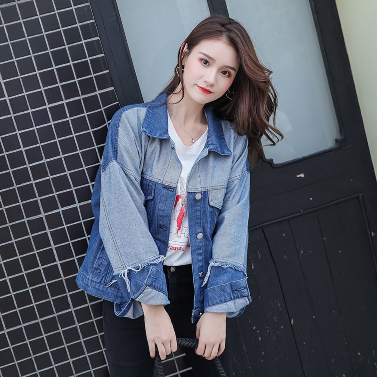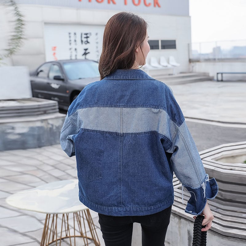 送料無料 パッチワークコントラストカラーショートデニムジャケット女性ルーズ原宿ジャンコートストリート春ブルー上着スタイル かわいい スプリング 春物 AE3356596985993237 | 女性の為の通販サイト-fashion navi