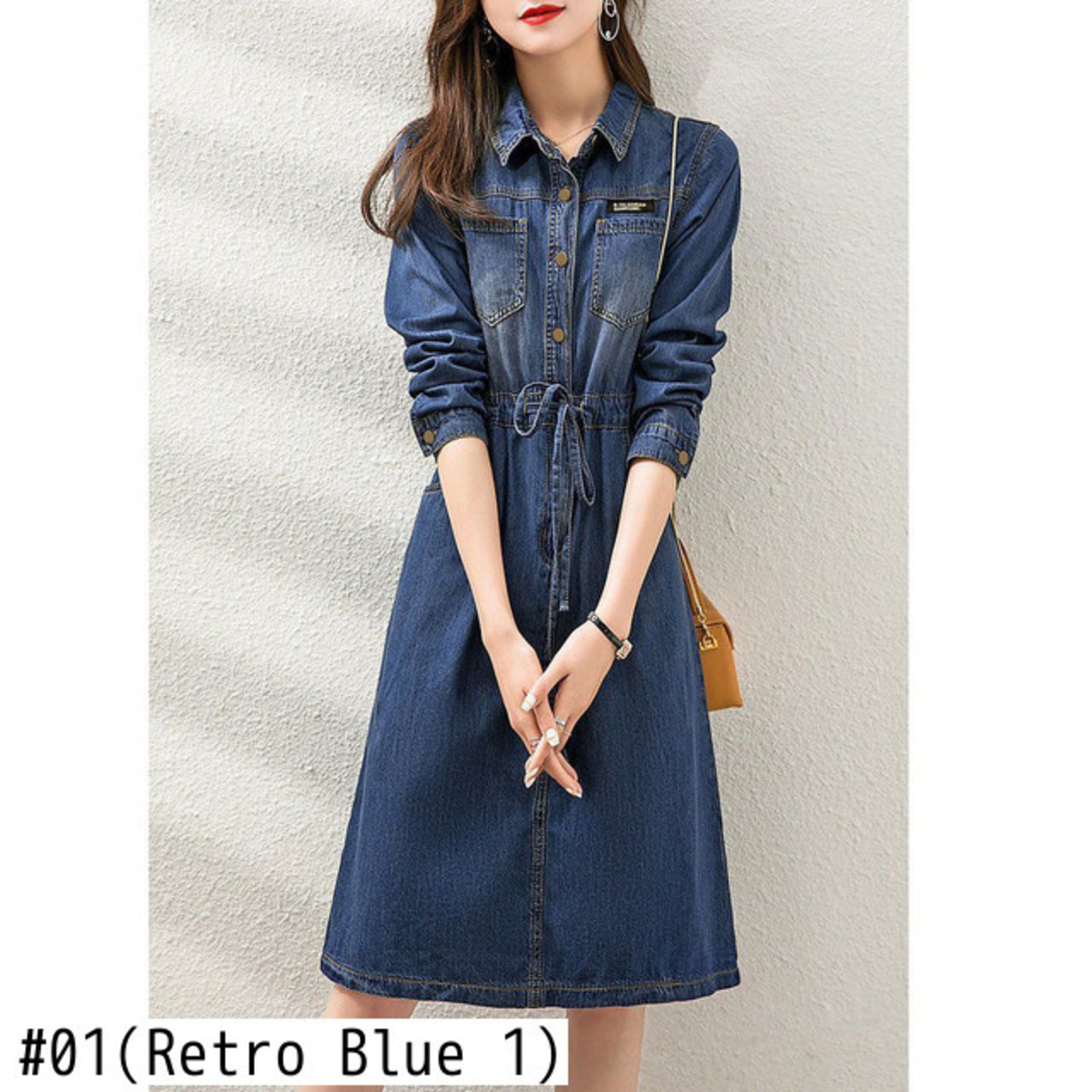 送料無料 2023 春シングルブレストデニムドレス女性ミッドレングスポロ襟ドレスロングスリーブベーシックジーンズ Vestidos 長袖 スプリング 春物 AE3356525495184430 | 女性の為の通販サイト-fashion navi
