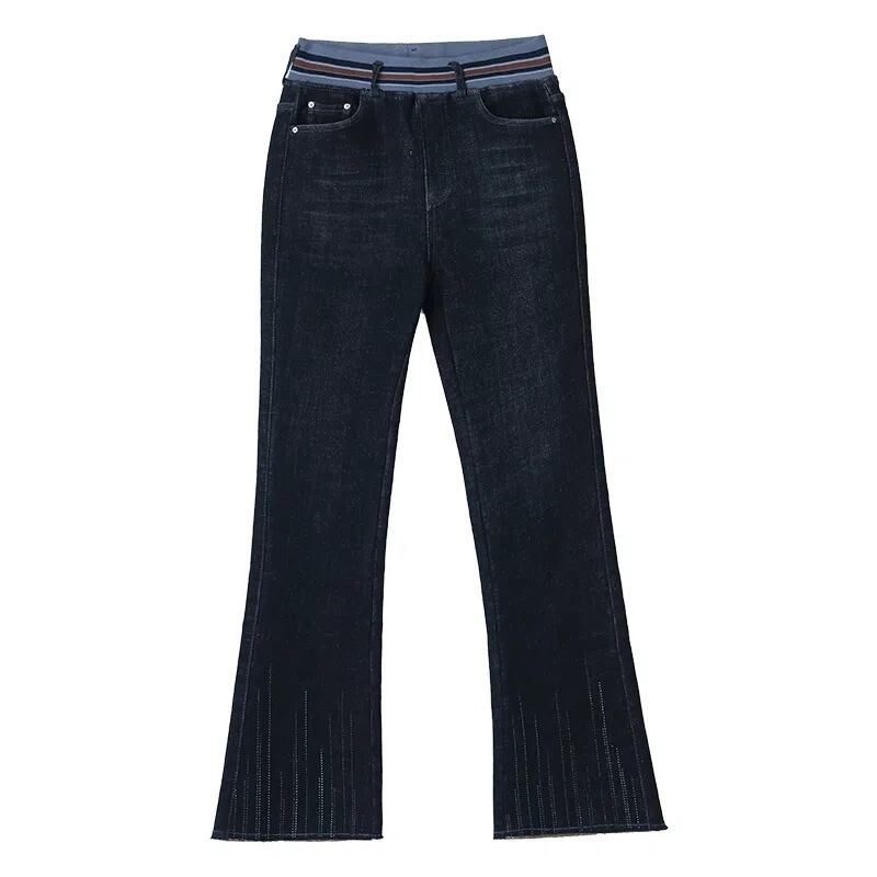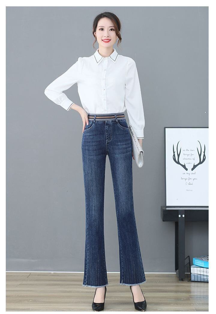 送料無料 ストレッチ フレア ジーンズ女性ウエスト スキニー Vaqueros アンクル丈ベルボトム パンツ スリム デニム ズボン AE3356567018922179