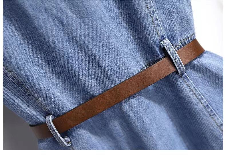 送料無料 フレンチスタイルスリムベルトデニムドレス女性ポロ襟半袖夏ジーンズドレスミッドレングスカウボーイ Vestidos ショート ハーフスリーブ サマー 夏物 ハーネス AE3356595414092130