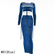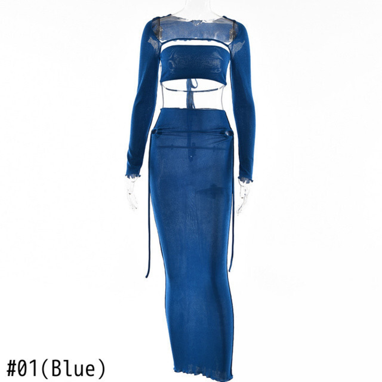 送料無料 Mozision セクシーな 3 セットスーツクロップドトップスフルスリーブ背中の開いたマキシドレス女性衣装秋 Dresssets クラブ Vestido オータム 秋物 3セット AE121288896794111294