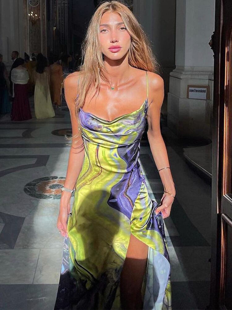 送料無料 Mozision 2022 秋のスパゲッティストラッププリントマキシドレス女性ガウンノースリーブボディコンスプリットロングプリントドレス オータム 秋物 AE121288839585072496