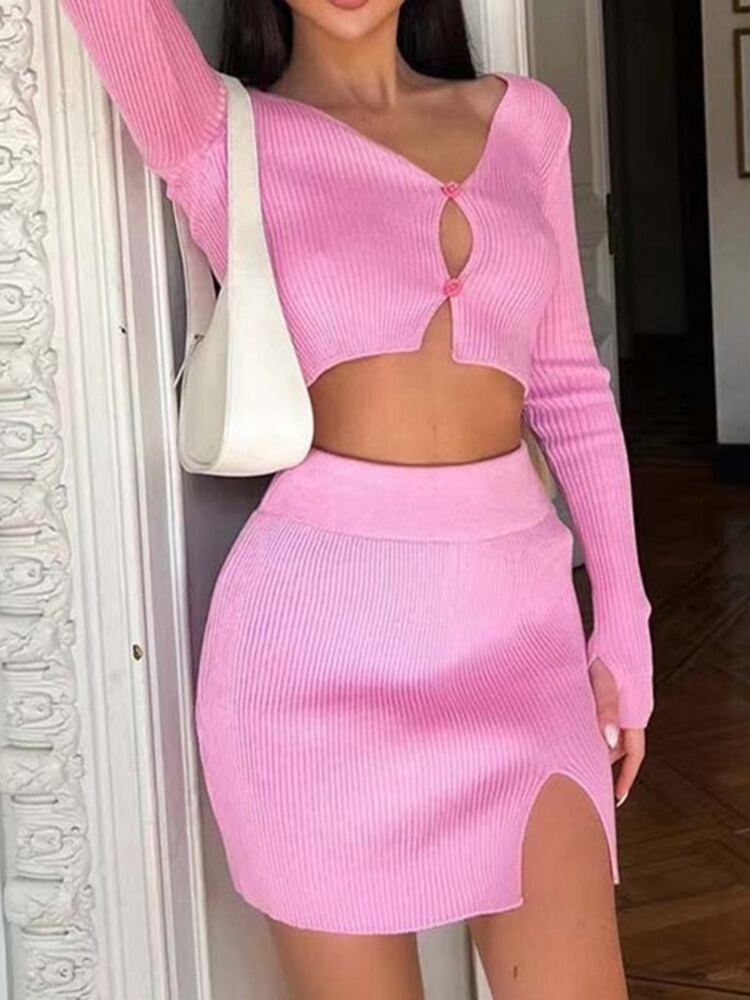 送料無料 Mozision 秋ニットドレスセット女性 2022 V ネックフルスリーブ Tシャツとミニスカートマッチングセット 2 点セット オータム 秋物 Vネック AE12128886615169667
