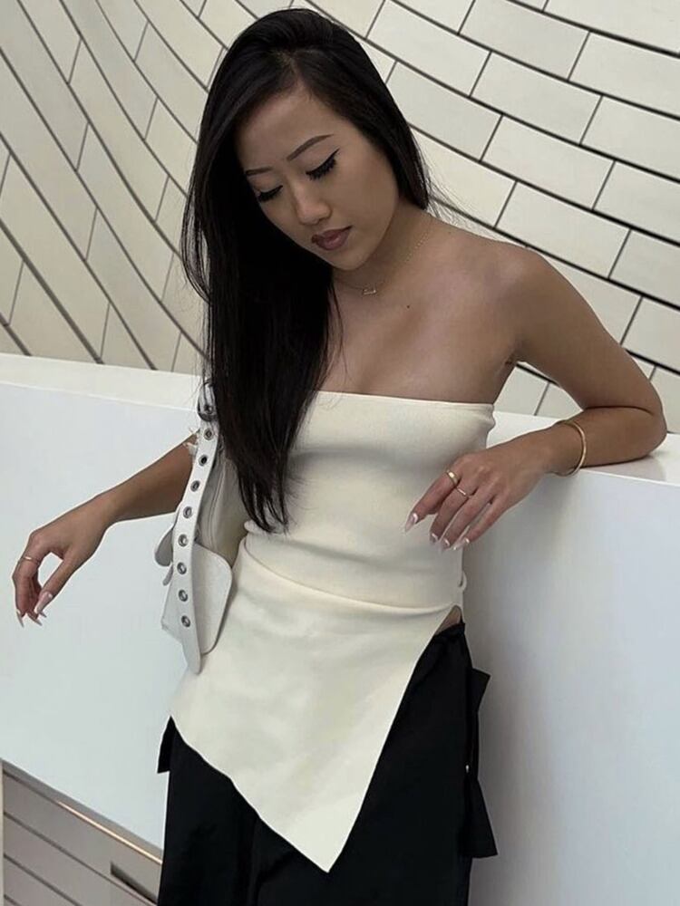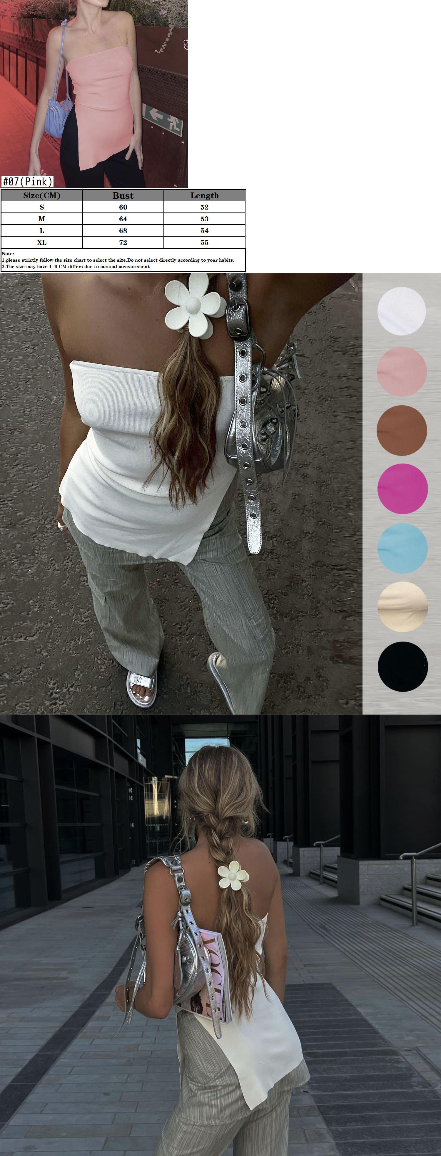 送料無料 Mozision ストラップレス ニット タンクトップ女性オフショルダー背中の開いたノースリーブ クロップ トップ セクシーなスプリット ショート トップ ベスト AE121288854758264495