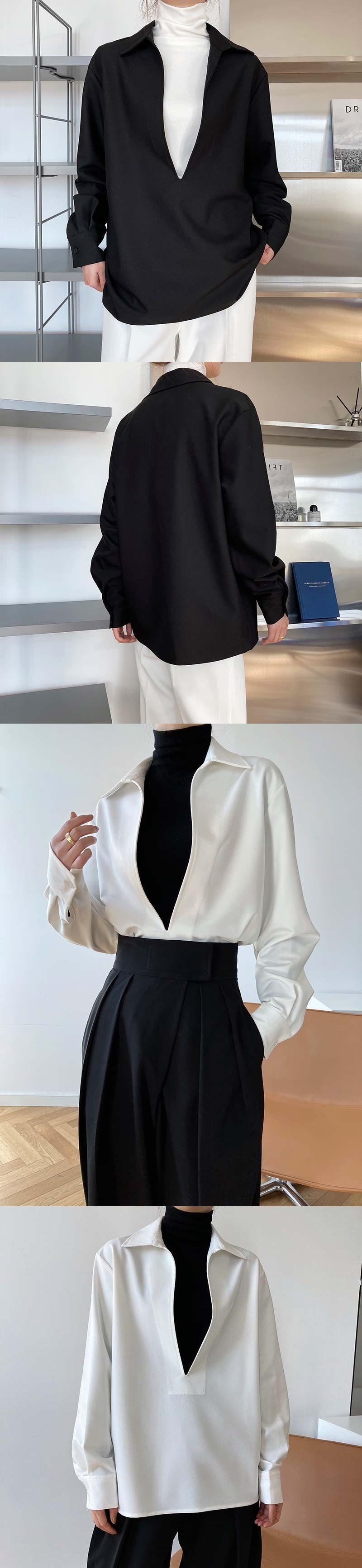 送料無料 Mozision 2021 春 Vネック シャツ レディース 無地 フルスリーブ ルーズ トップス プルオーバー シャツ 潮 スプリング 春物 ソリッドカラー AE121288891198082749