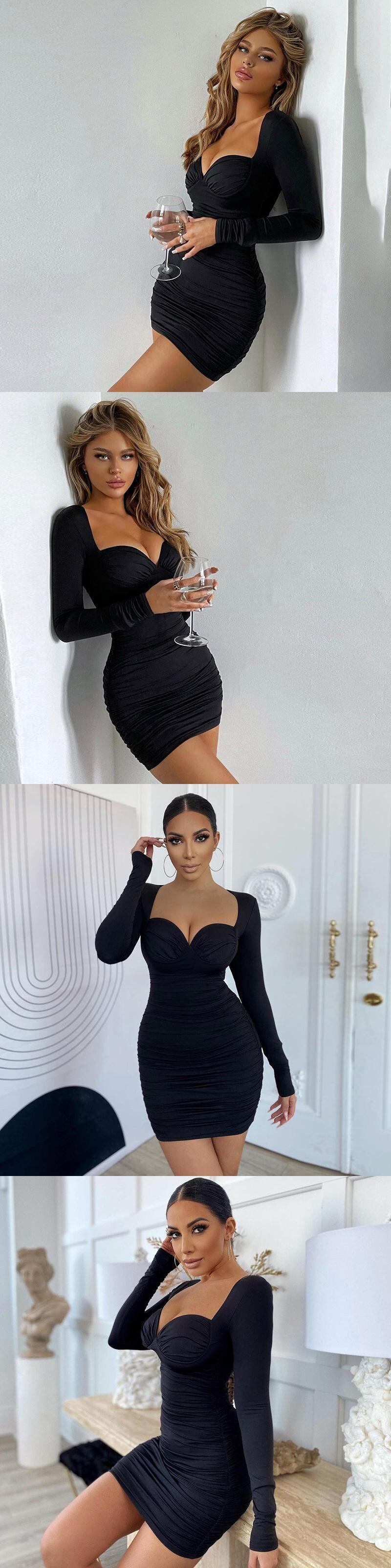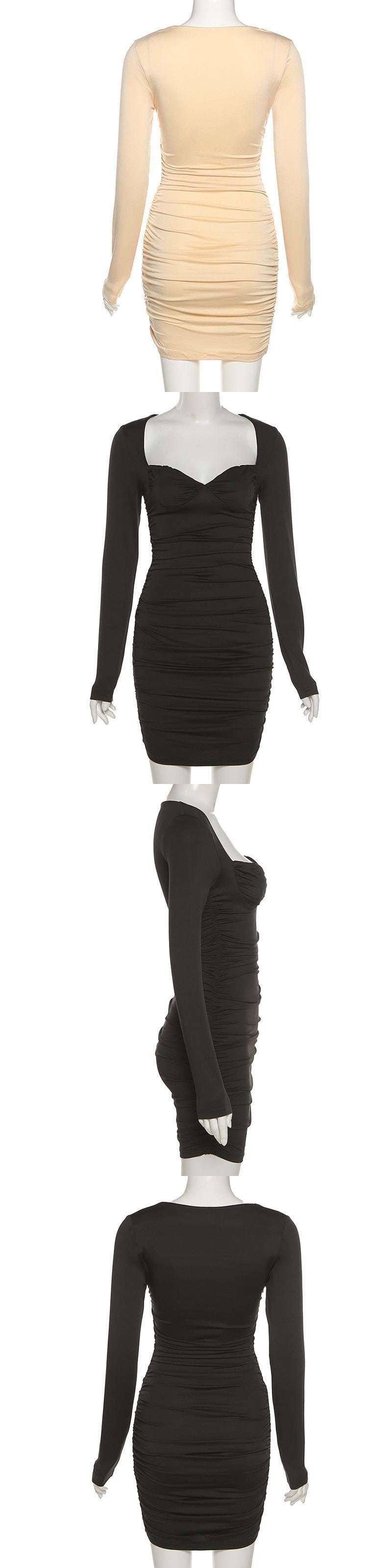 送料無料 Mozision 秋スクエアカラーシャーリングボディコンドレス女性カーキセクシーな長袖ミニパーティークラブウェアドレス Vestidos ロング オータム 秋物 スクウェア AE121288831203589016