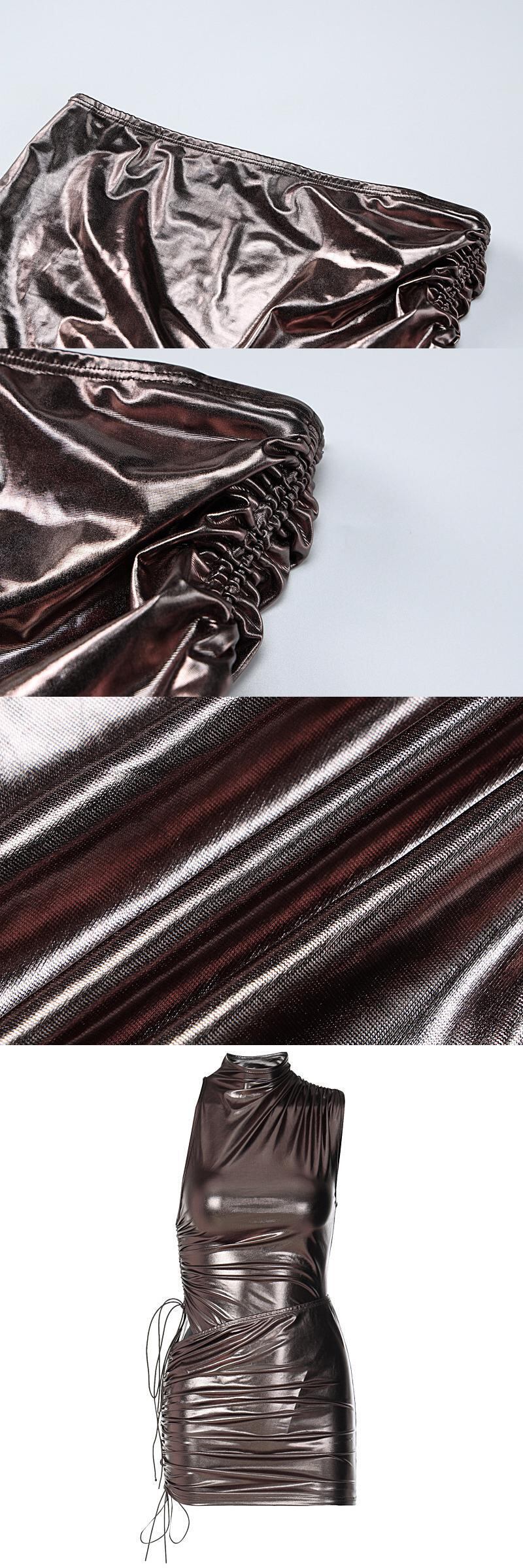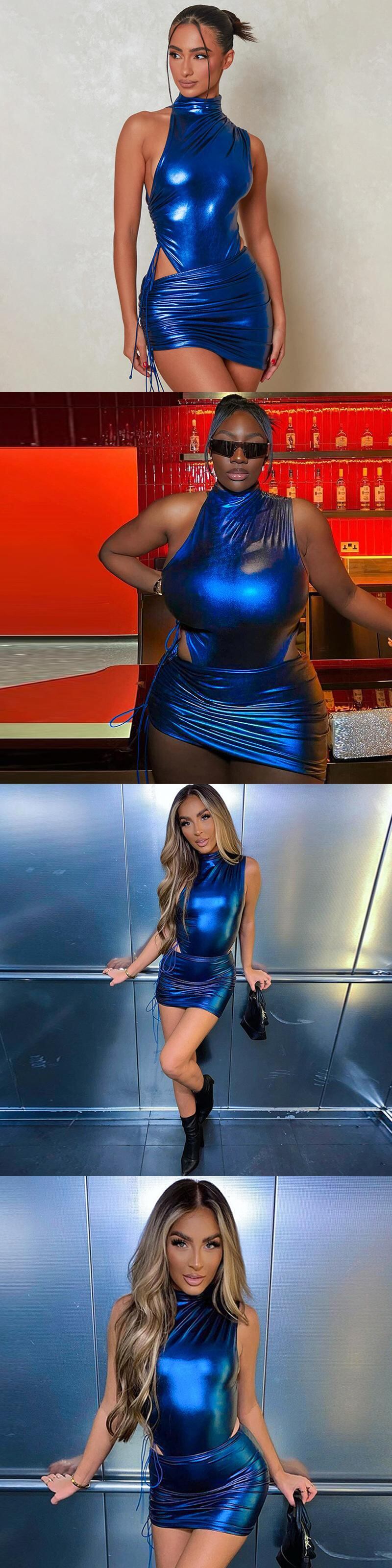 送料無料 Mozision セクシーなパーティードレスセット女性ワンショルダーノースリーブボディスーツとミニスカート巾着シャーリング 2 点セット AE121288868384591033