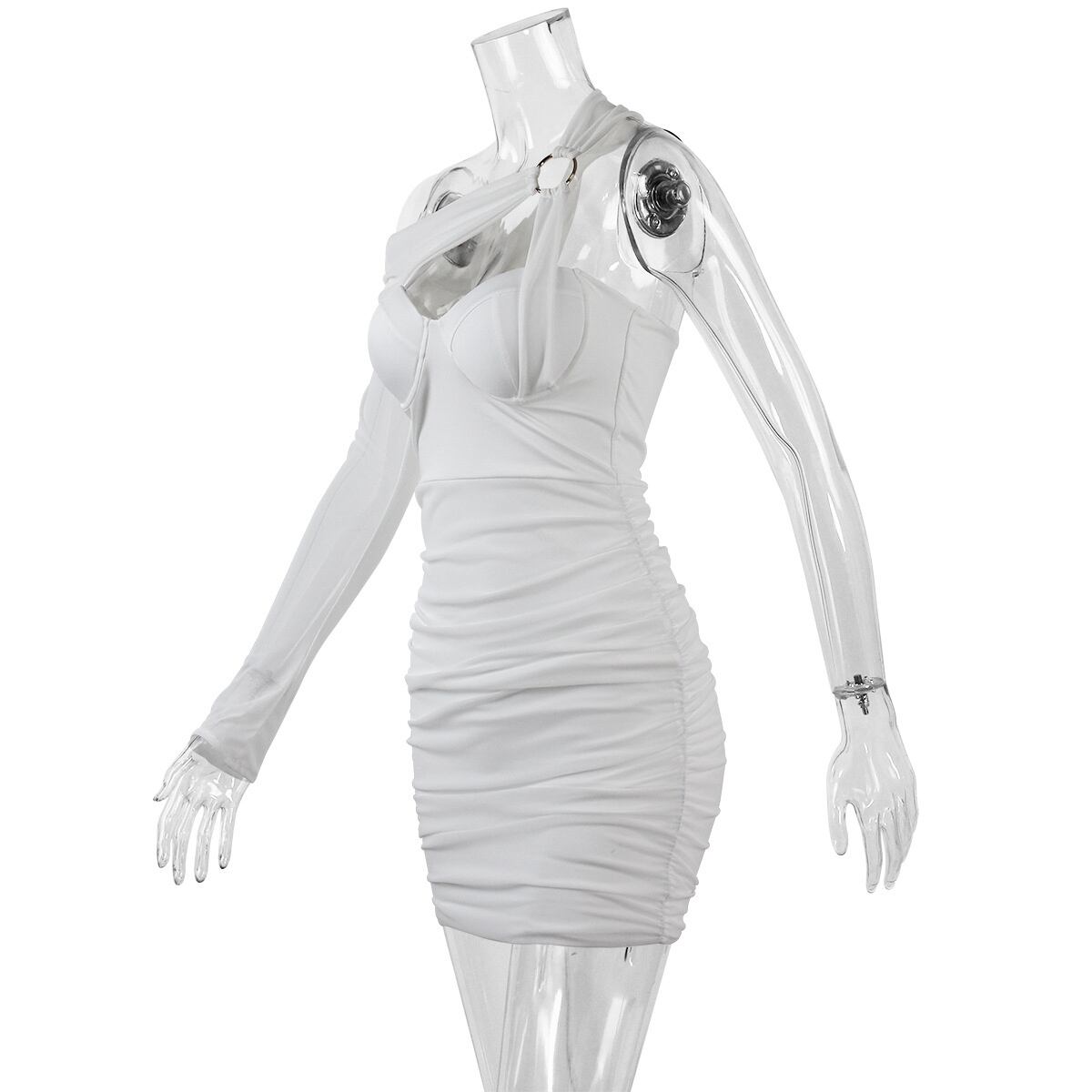 送料無料 Mozision ワンショルダー中空アウトシャーリングミニドレス女性ローブ白背中の開いたボディコンセクシーなパーティードレス Vestido クラブウェア ホワイト AE121288815975777125