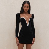 送料無料 Mozision 長袖セクシーなディープ V ネック有線ディアマンテクリスタルパッド入りボディコン衣装女性の冬のベルベットパーティードレス ロング レッド ウィンター 冬物 Vネック AE121288896190291209