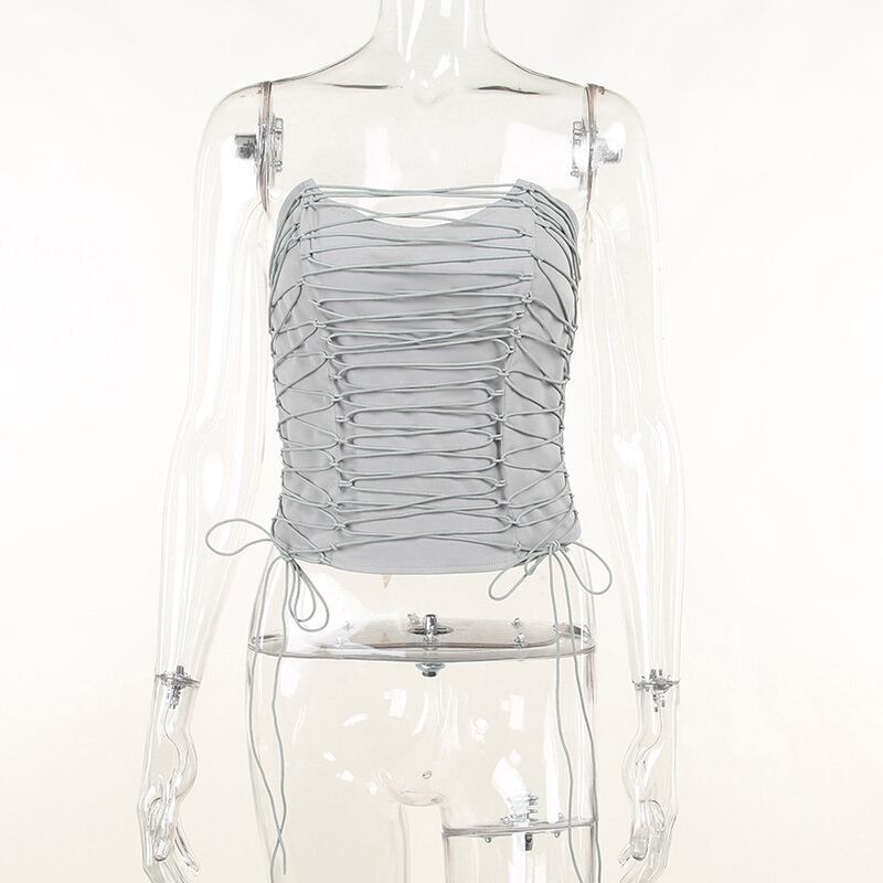 送料無料 Mozision グレー中空アウトセクシーなタンクトップの女性のベストジッパーオフショルダーノースリーブクロップトップスボディコンコルセットトップ AE121288813109683375 | 女性の為の通販サイト-fashion navi