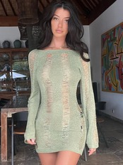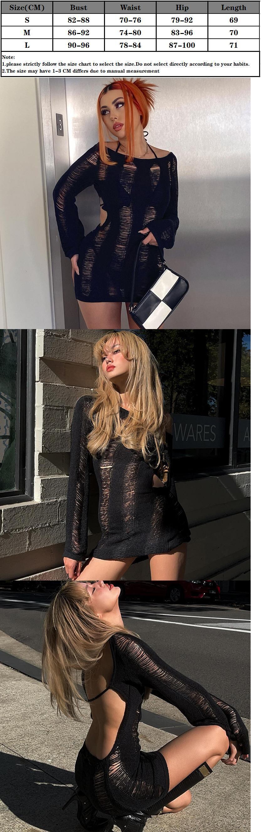 送料無料 Mozision 中空アウトニットドレス女性ガウン秋フルスリーブ背中の開いたレースアップミニドレス服ストリート オータム 秋物 AE121288852604952181