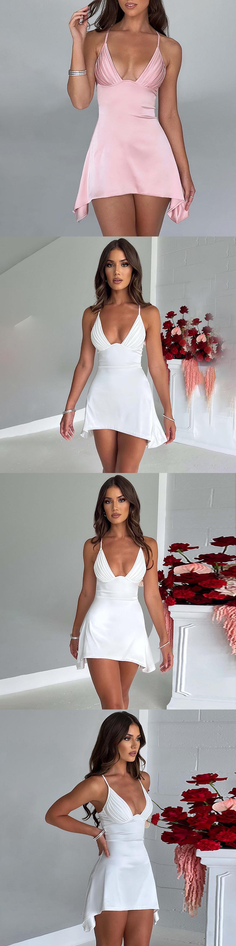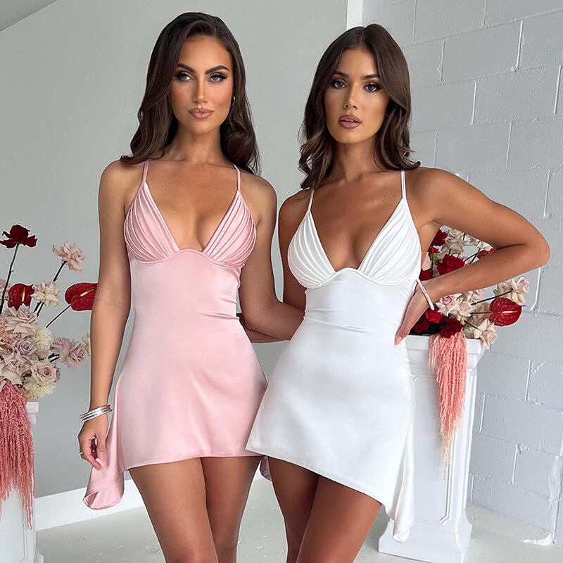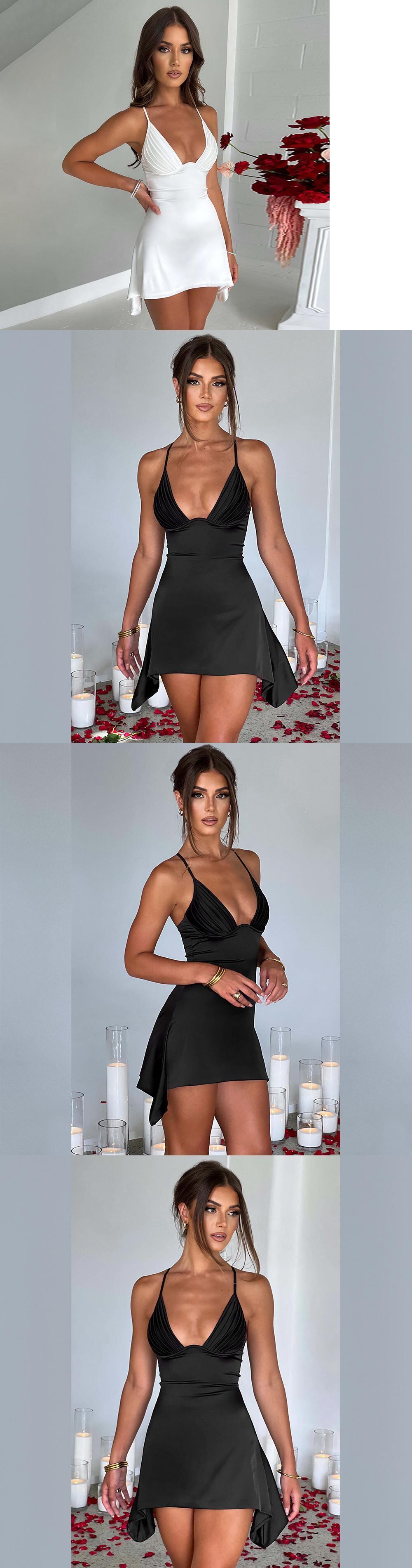 送料無料 Mozision サテンスパゲッティストラップセクシーなミニドレス女性ローブ夏ディープ V ネックノースリーブ背中の開いたクラブパーティードレス Vestido サマー 夏物 Vネック AE121288821550547182