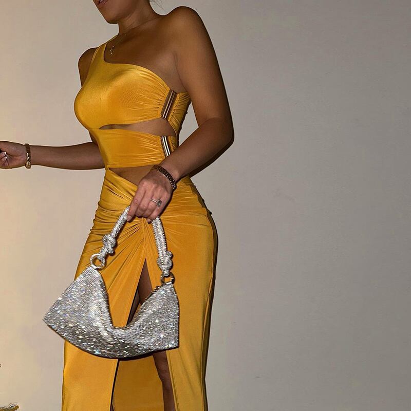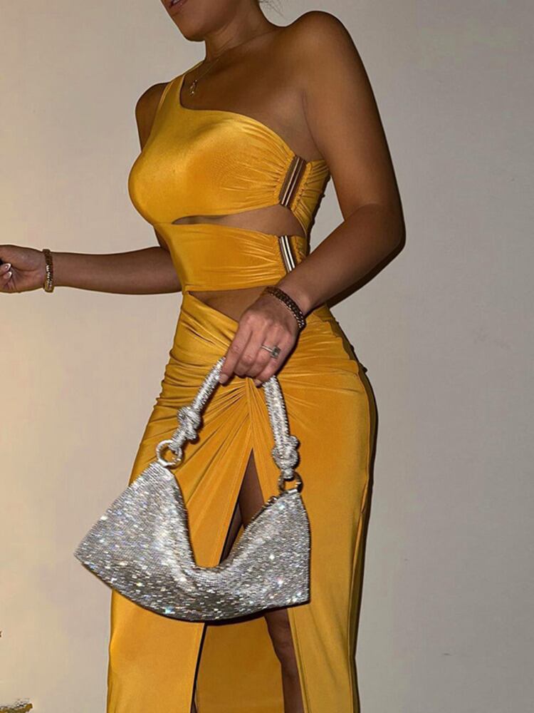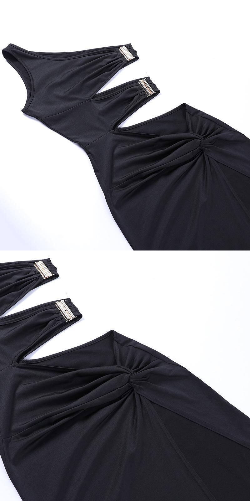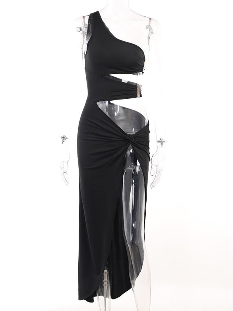 送料無料 Mozision ワンショルダー中空アウトスプリットミディドレス女性ローブノースリーブ背中の開いたセクシーなパーティーロングドレス Vestido AE121288865549196581