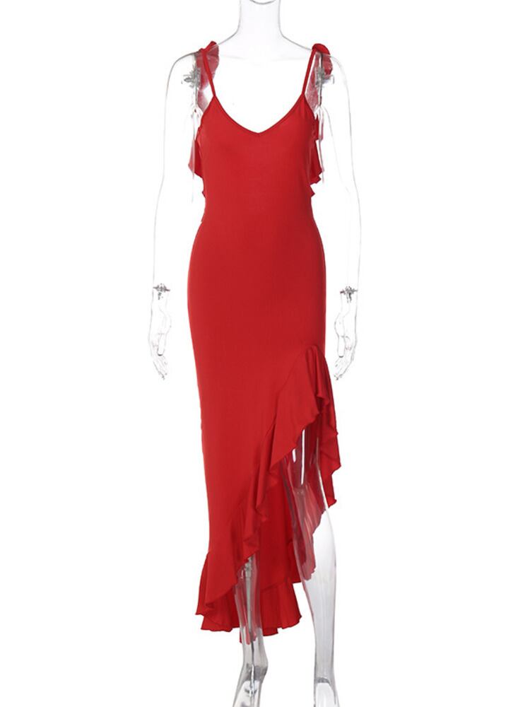 送料無料 Mozisionフリルバックレスマキシドレス女性スパゲッティストラップノースリーブスプリットドレスクラブパーティーサンドレス AE121288855868852573