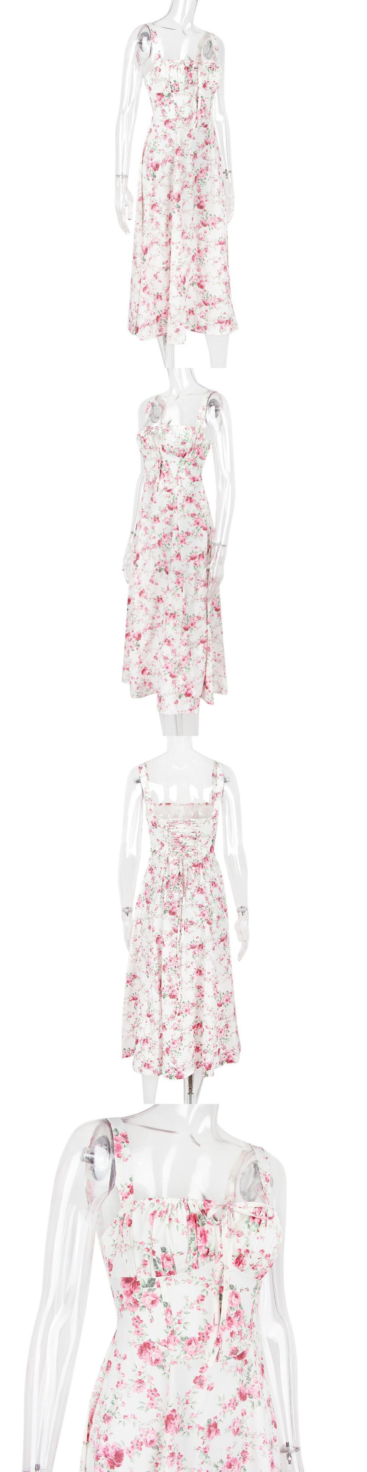 送料無料 Mozision 花柄セクシーなミディドレス女性ノースリーブバックレススプリットサンドレスレースアップロングドレス AE121288861360934745 | 女性の為の通販サイト-fashion navi