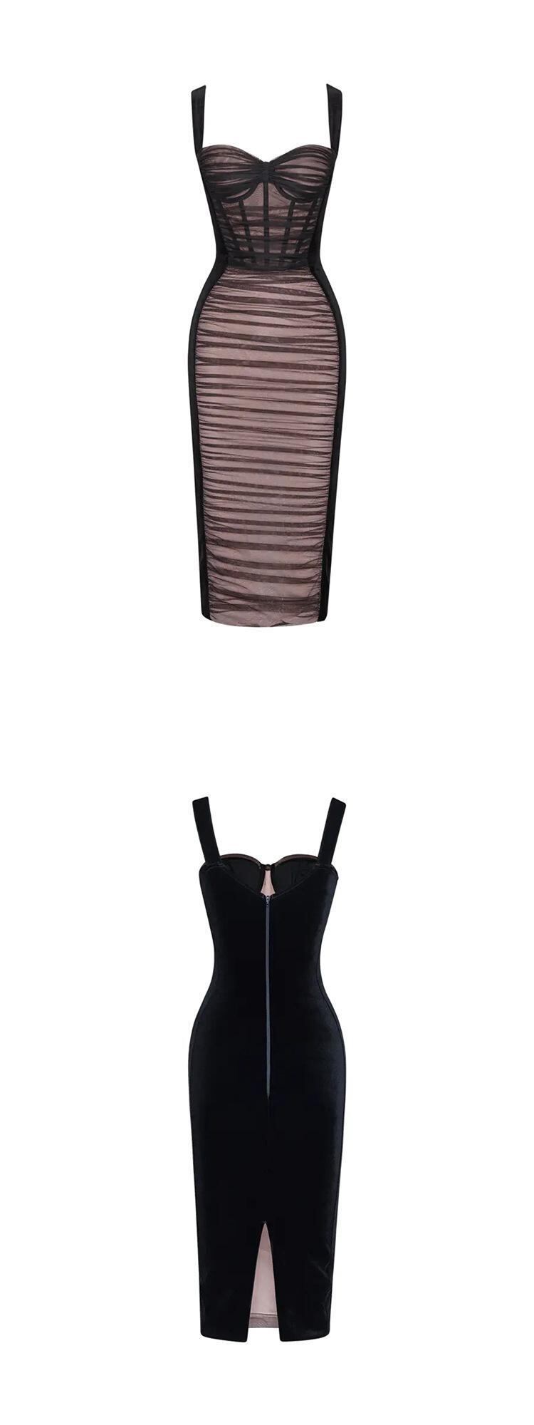 送料無料 Mozision 二層メッシュセクシーなミディドレス女性ローブ 2023 春ノースリーブ背中の開いたボディコンクラブパーティードレス スプリング 春物 AE121288889681729329