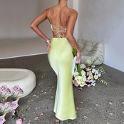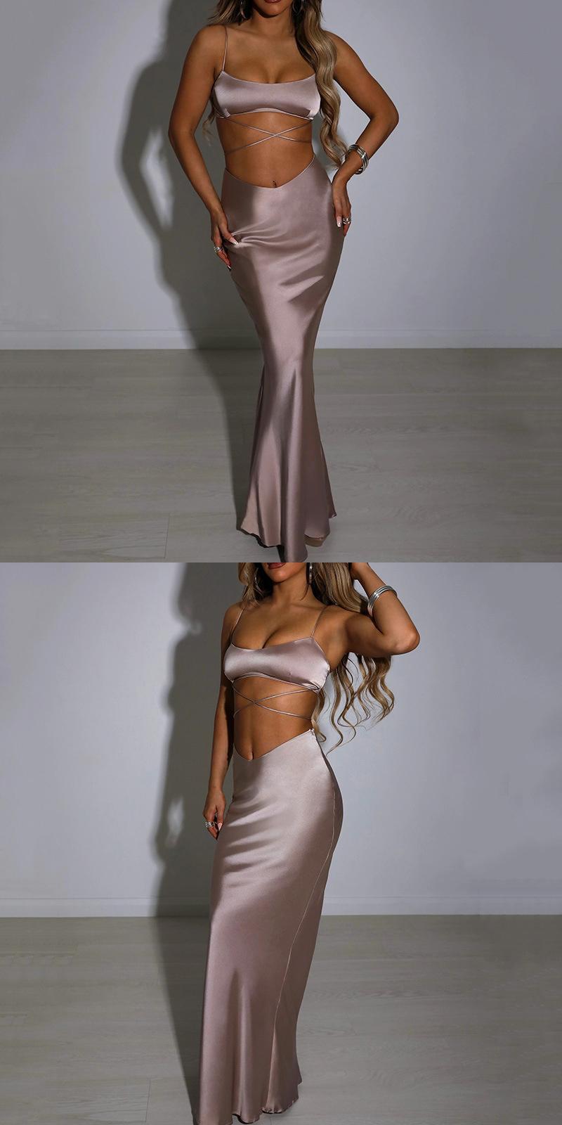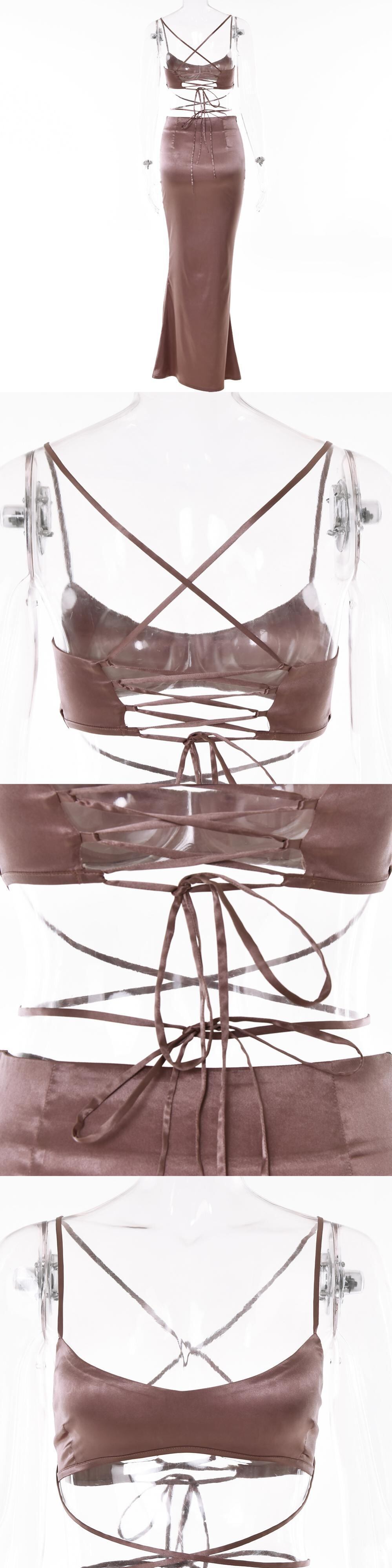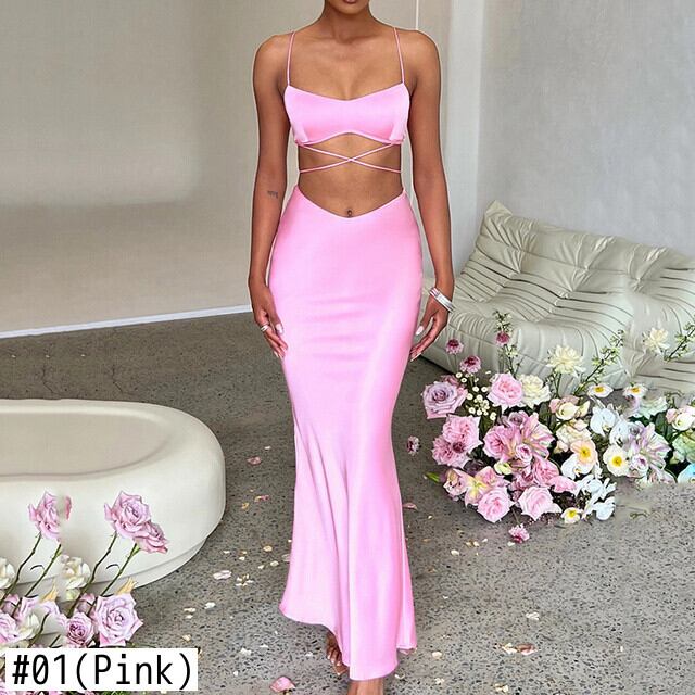 送料無料 Mozision サテンクロップトップとロングスカートセットセクシーな巾着ドレスセット女性衣装 2022 秋パーティー 2 点セット オータム 秋物 AE12128885892201499